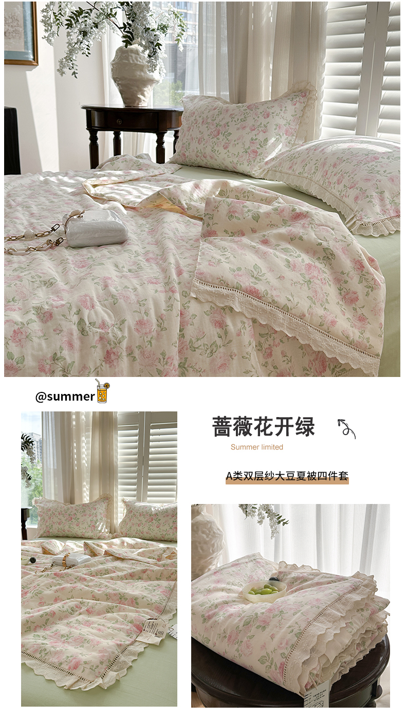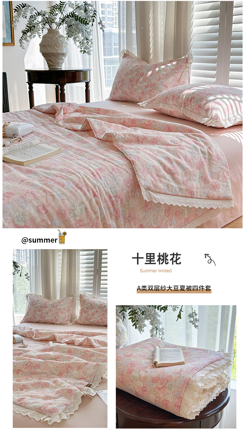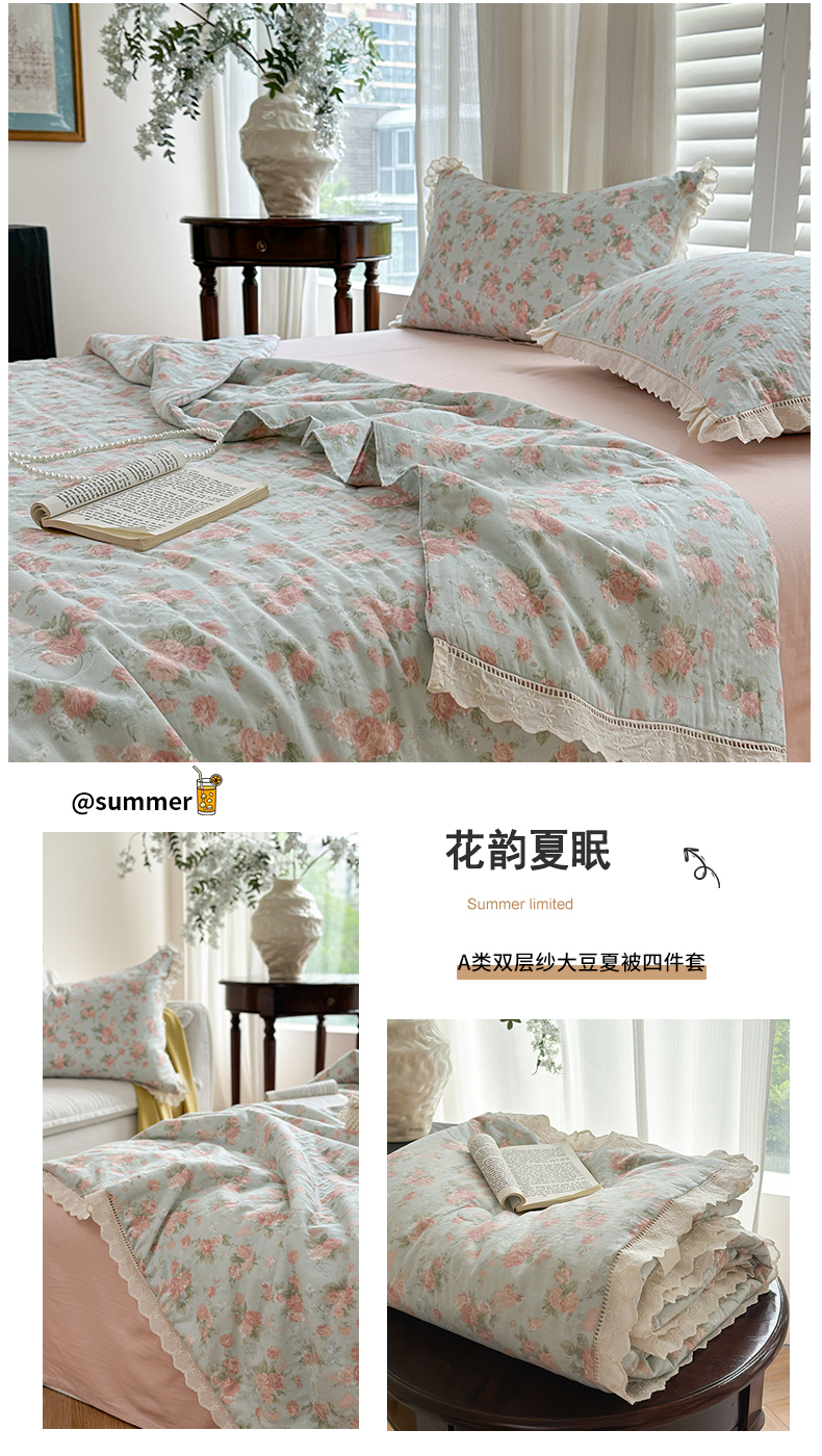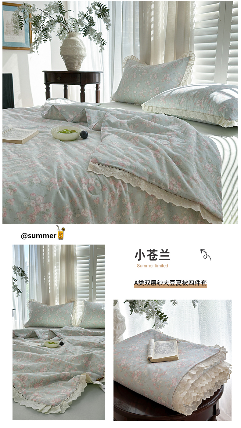 (总)麦伦家居 2025多功能床品全棉纯棉A类有氧双层纱+豆豆绒四件套荷叶边系列,组合图仅供展示不可下单,星星人,童梦木马,糖炒栗子,花田粉兔,白月光,桃夭夭,豹纹猫咪,空谷幽兰,晚秋,花棠,莫奈花园,蒂芙尼-粉,青芜,花样年华,椿野