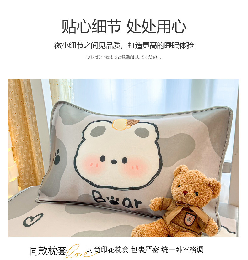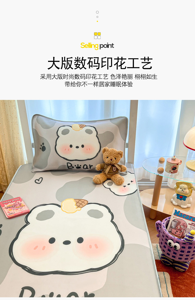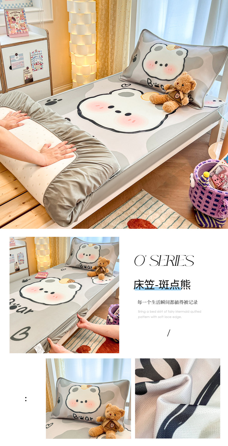 商品名称:柒月家居 2025新款大版冰丝床笠(学生床) 床笠-斑点熊