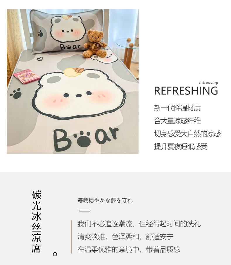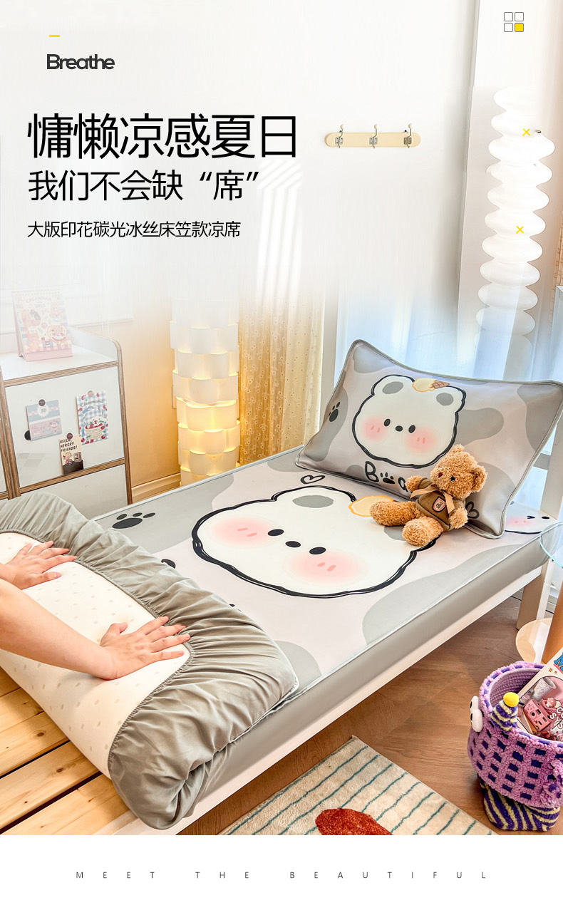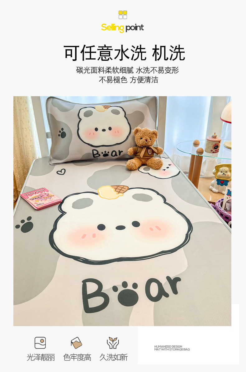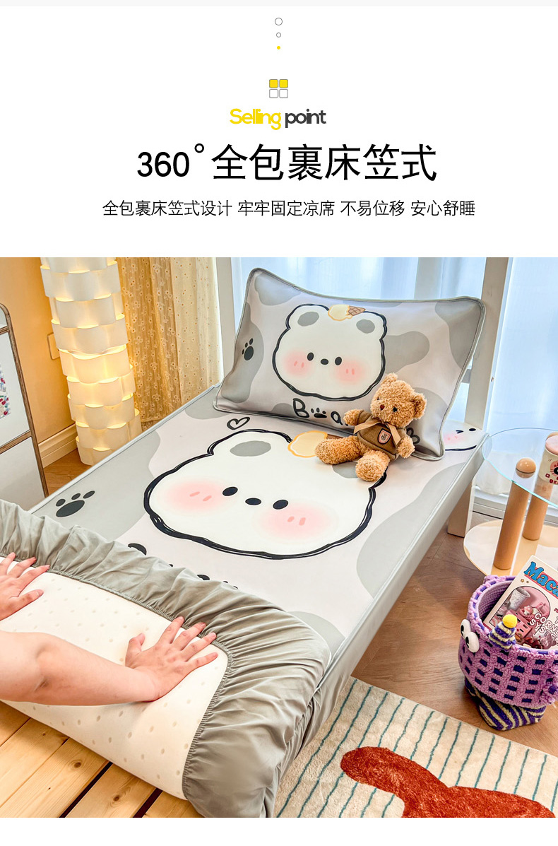 商品名称:柒月家居 2025新款大版冰丝床笠(学生床) 床笠-斑点熊
