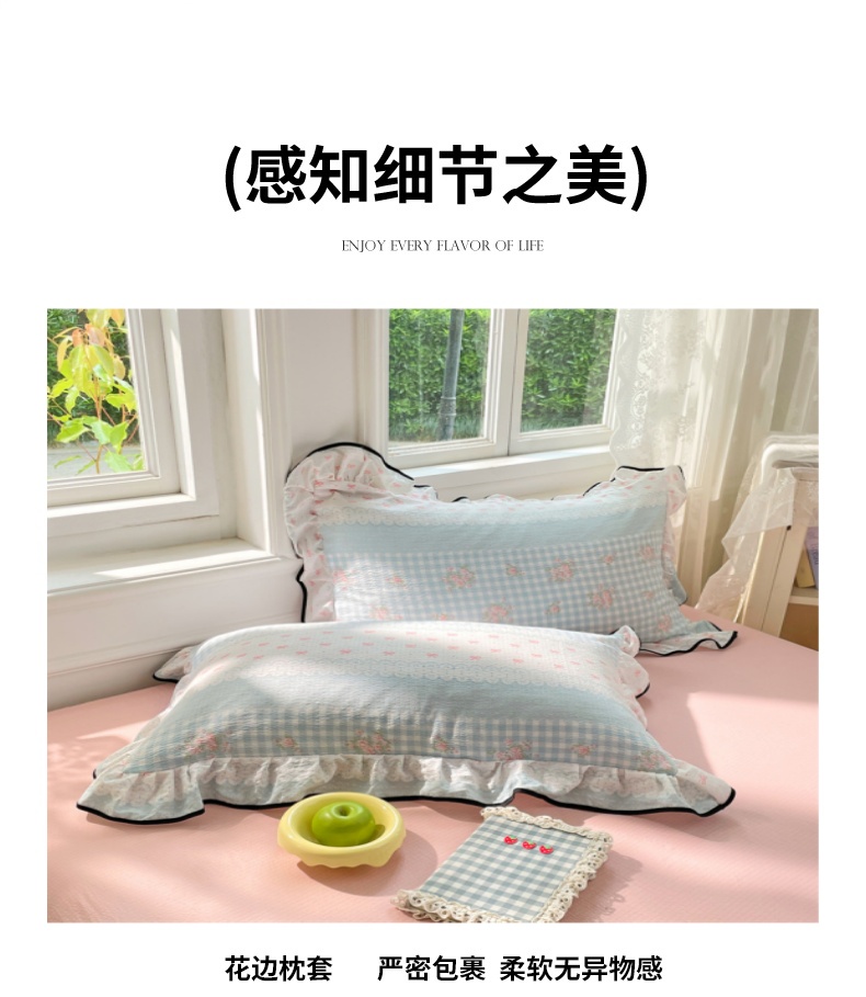 商品名称:梦舒羽 2025新款皱皱双层纱花边枕套宿舍情侣枕芯套单人枕头套 浮生若梦