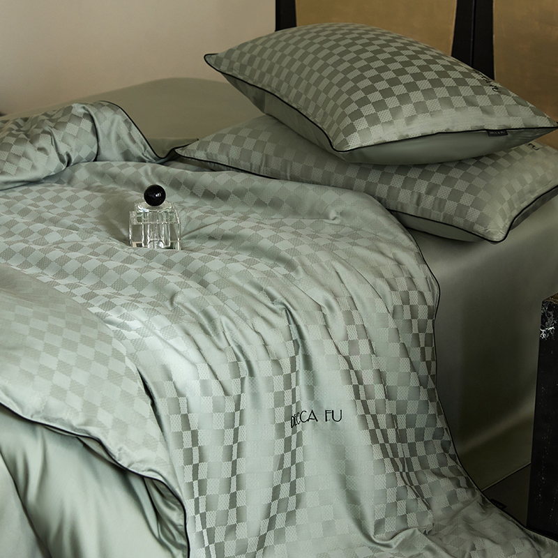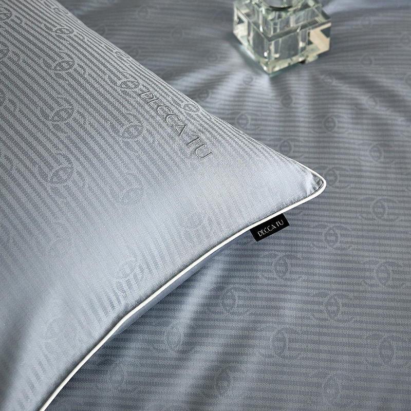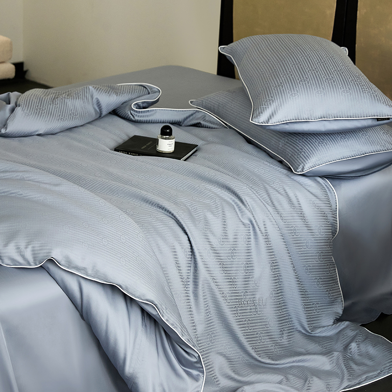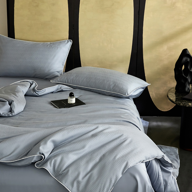 群鹿蚕丝羽绒馆 2025新款天丝棉提花银线刺绣嵌条麻绳工艺-铂金简奢款四件套 星辰-冰雨蓝
