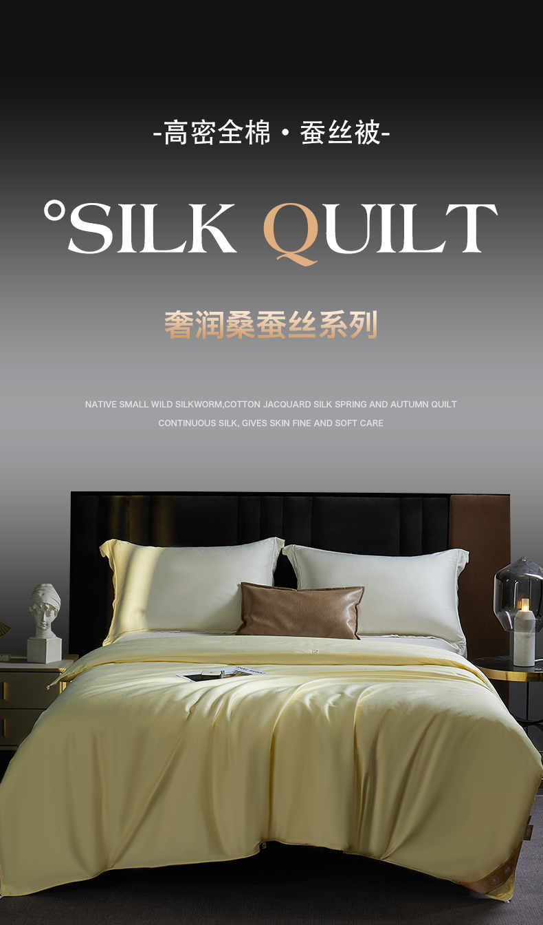 • 91家纺网 家纺一手货源 找家纺 群鹿蚕丝羽绒馆 【柞蚕丝填充可质检】2025新款长绒棉高支纯色蚕丝被可自由组合子母被 黄