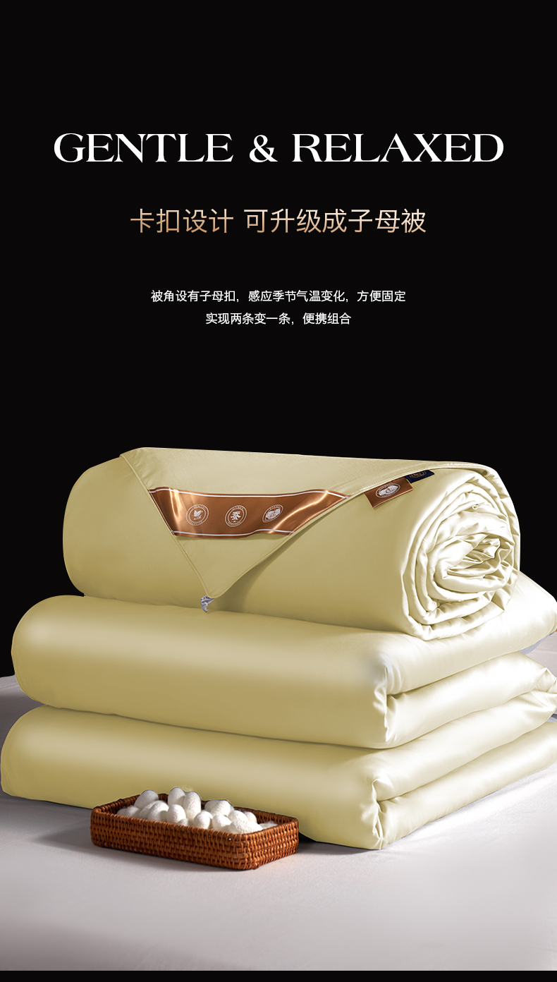 当前位置: 91家纺网 > 商品网购 > 被子 > 蚕丝被 > 群鹿蚕丝羽绒馆 【柞蚕丝填充可质检】2025新款长绒棉高支纯色蚕丝被可自由组合子母被 黄