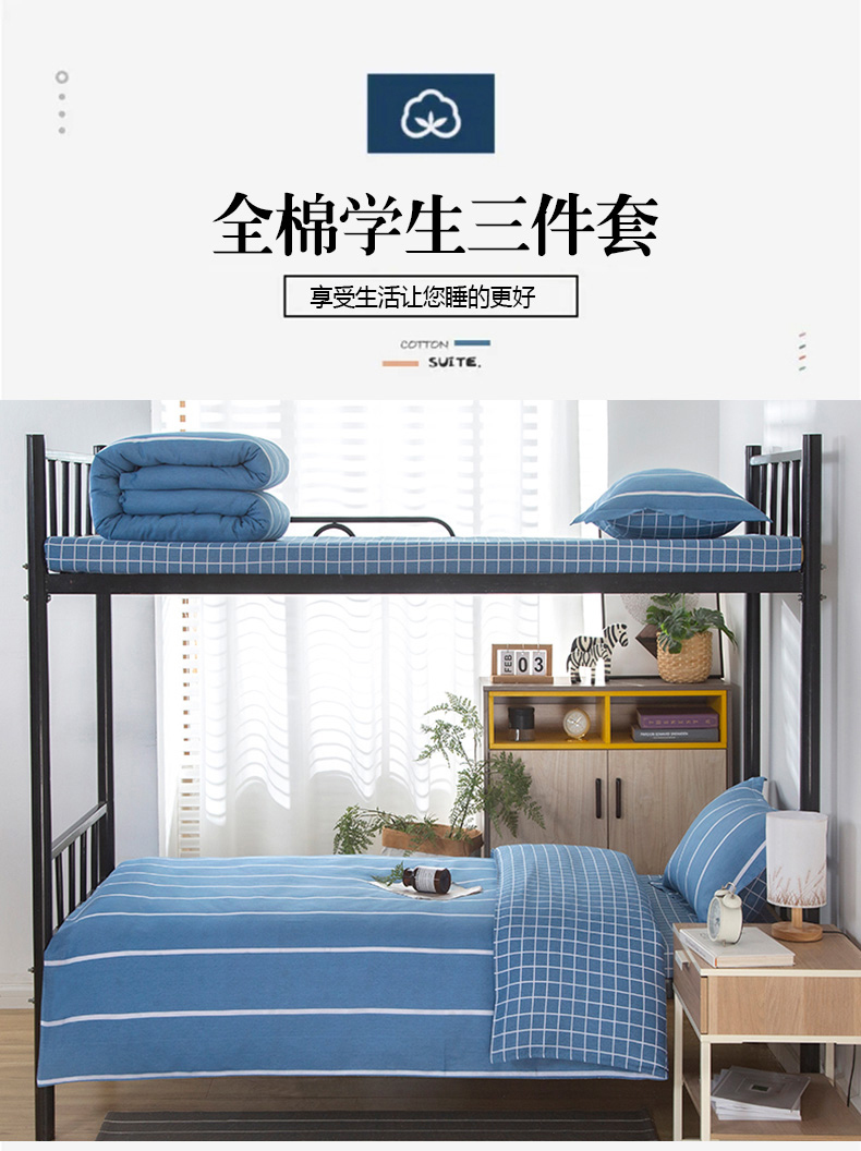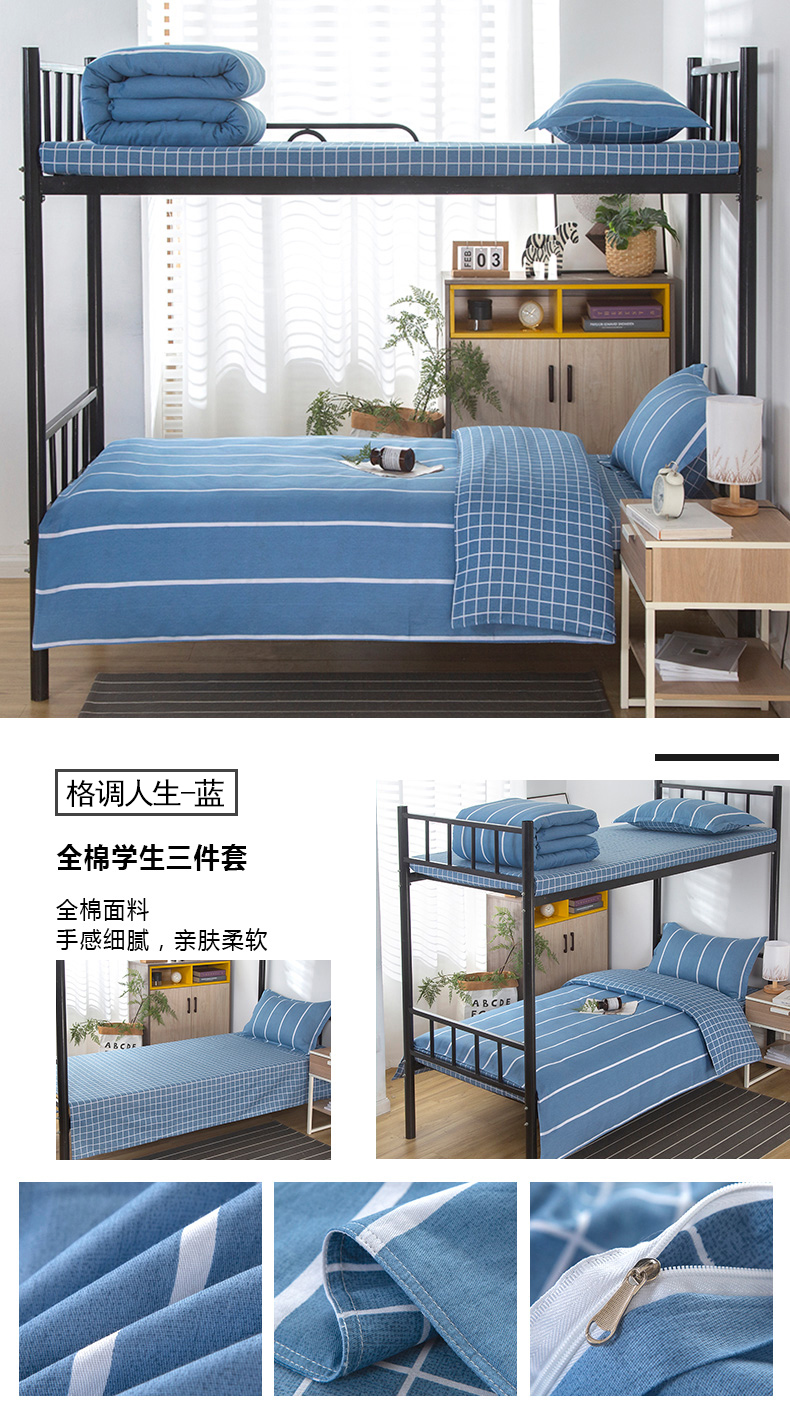 当前位置: 91家纺网 > 商品网购 > 床品套件 > 三件套 > 乐旗 2025新款全棉12868学生宿舍三件套纯棉六件套装 格调人生-蓝