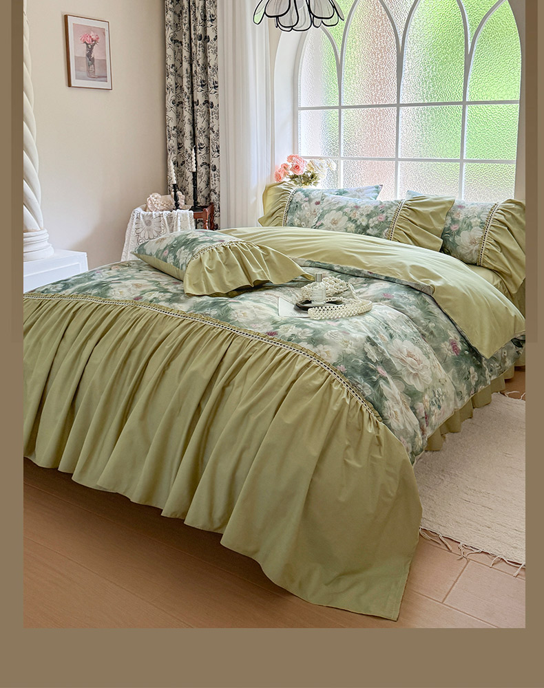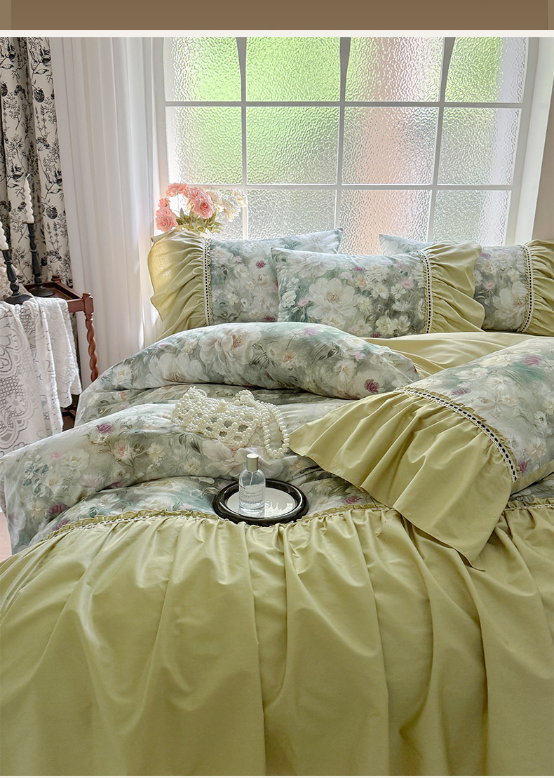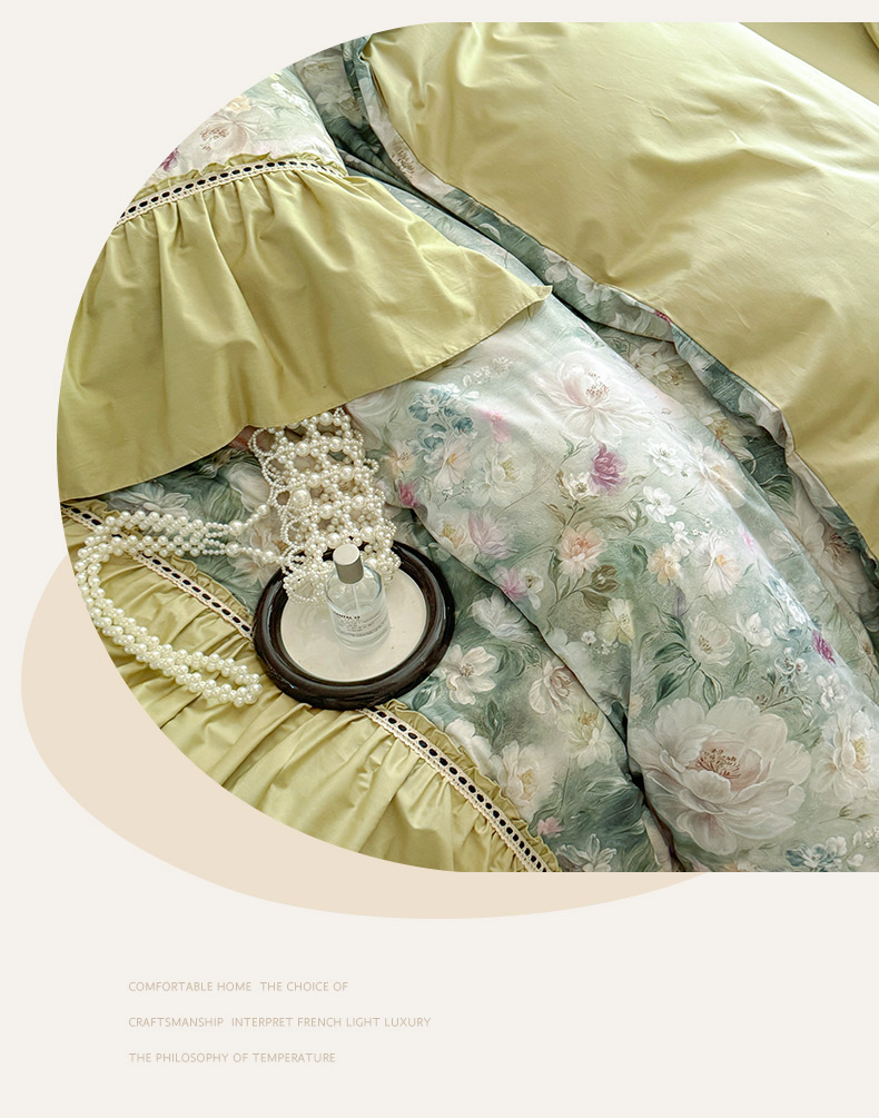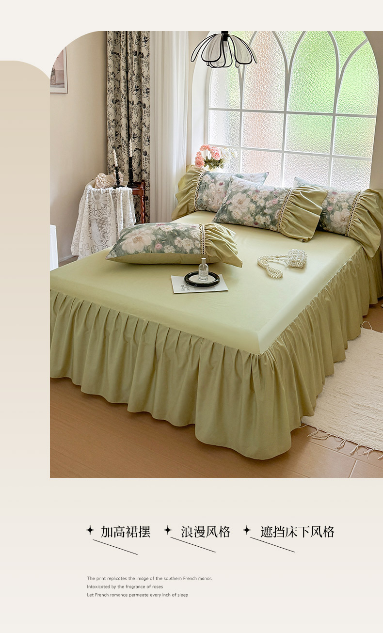 当前位置: 91家纺网 > 商品网购 > 床品套件 > 四件套 > 全棉普通四件套 > 亲亲公主 2025新款全棉法式宽花边四件套-玫瑰庄园 玫瑰庄园一抹茶绿