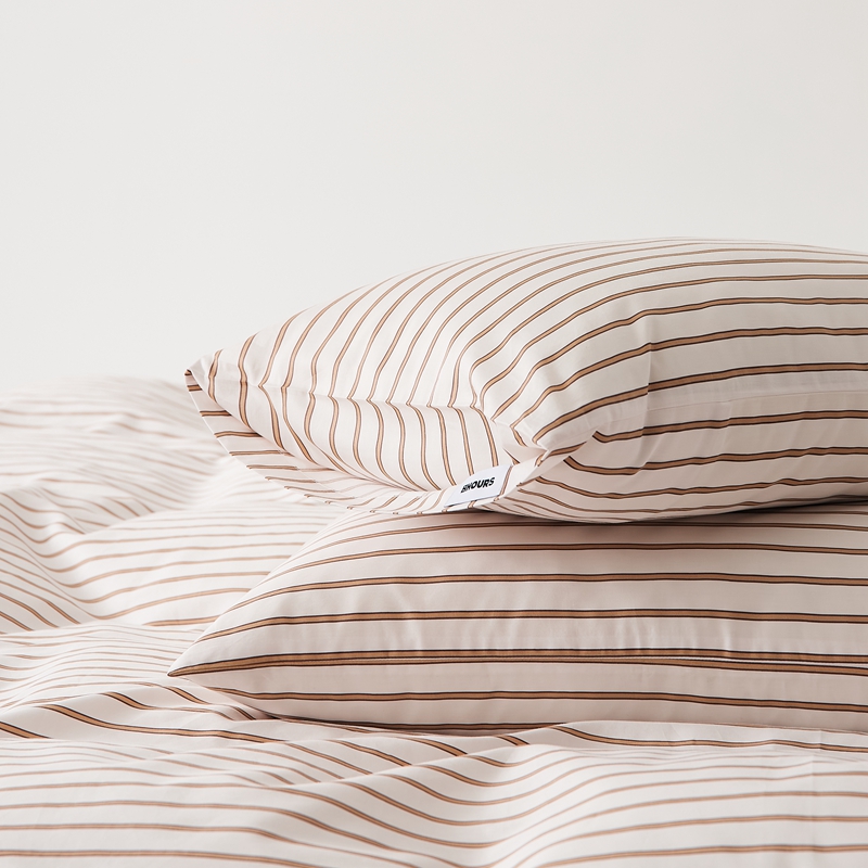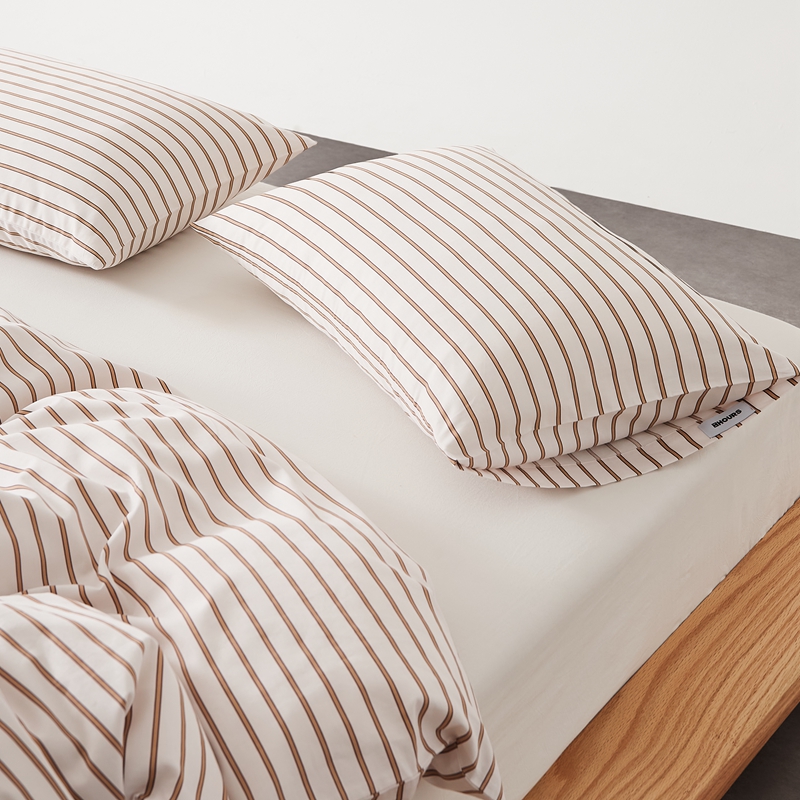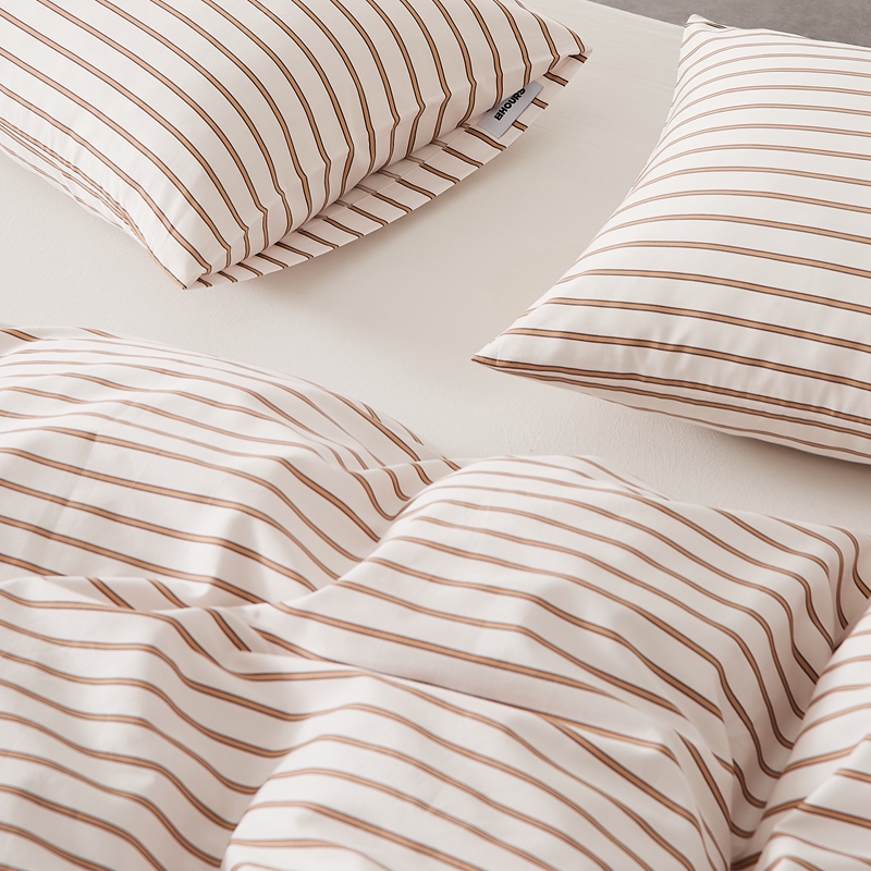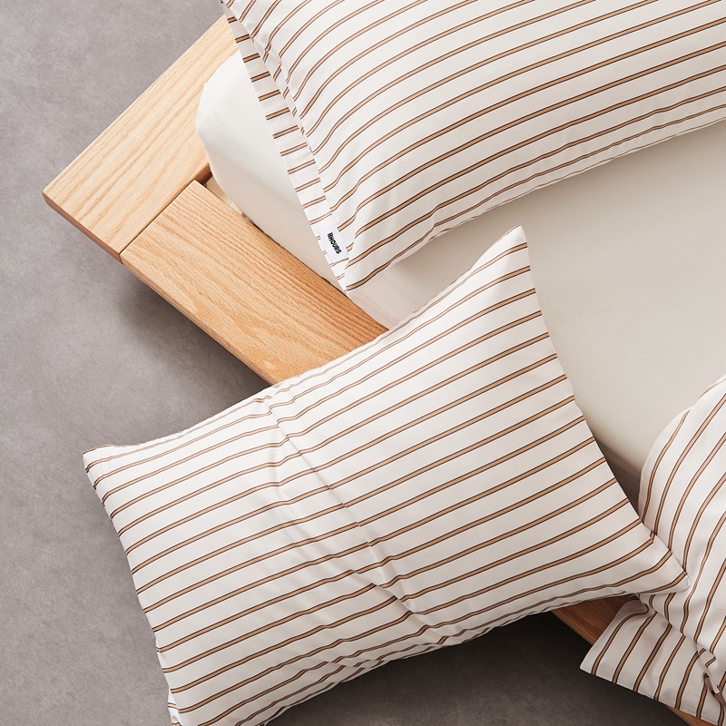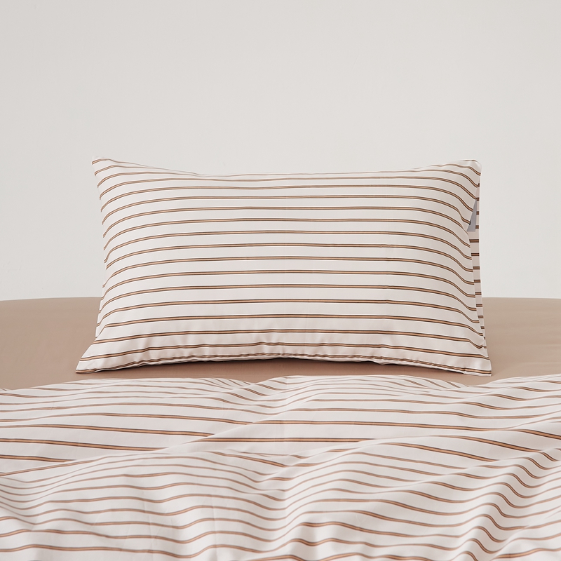 商品名称:8小时家纺 2025新款60支数码印花长绒棉单枕套 条纹-咖