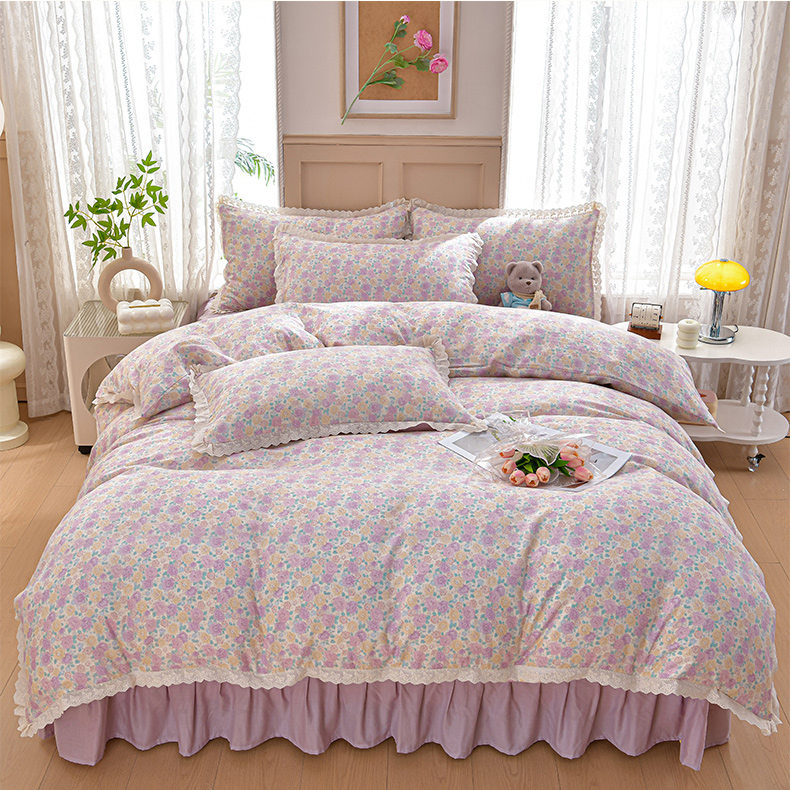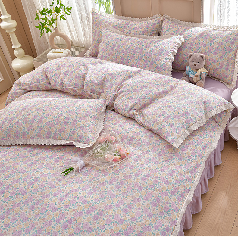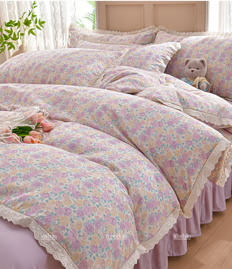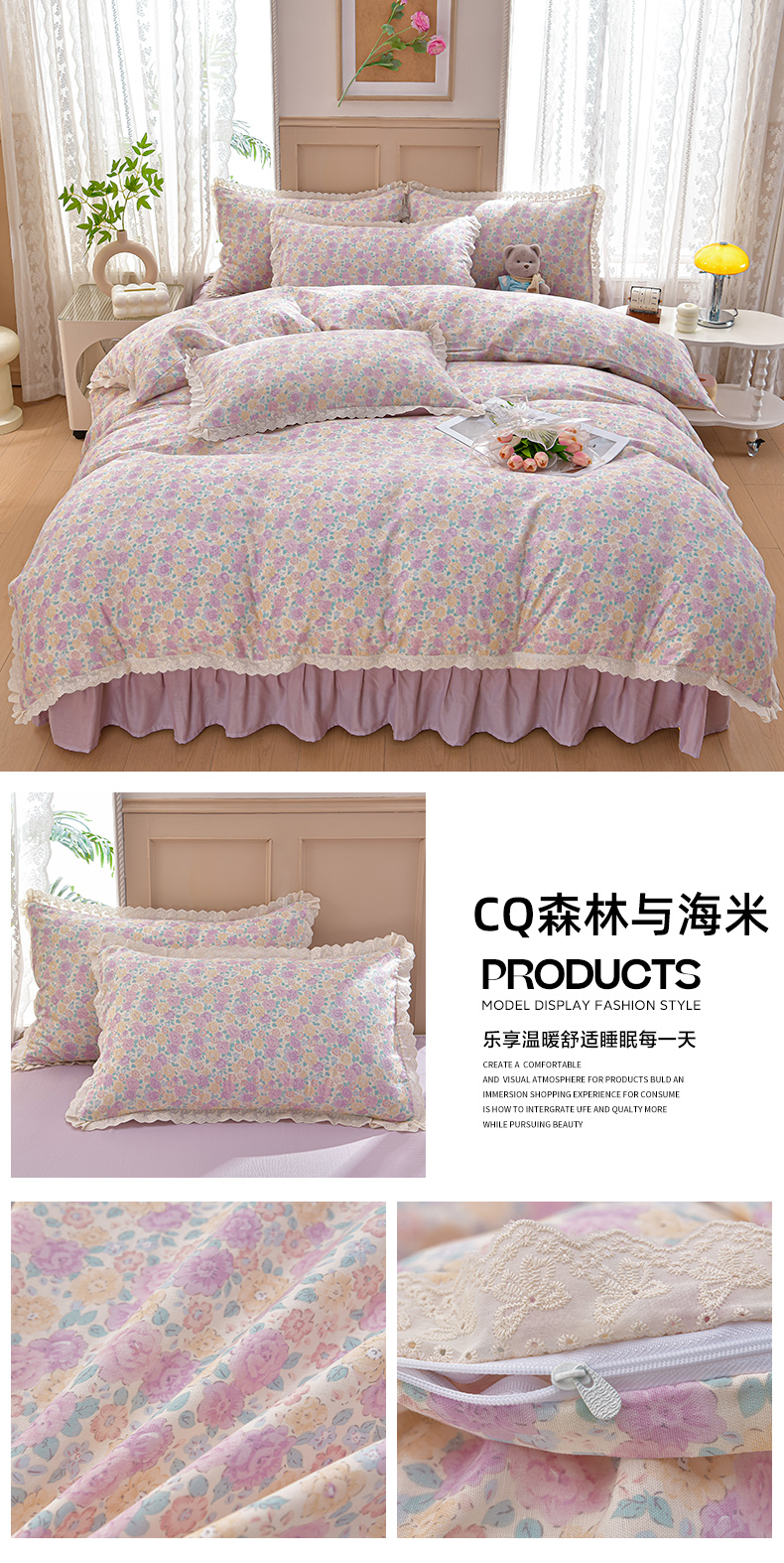 商品名称:绘萱家居 2026春夏新款纯棉100%全棉双层纱镂空花边工艺款床裙四件套 CQ森林与海米