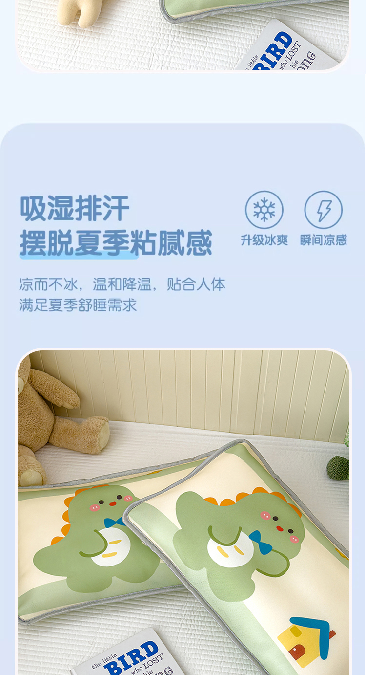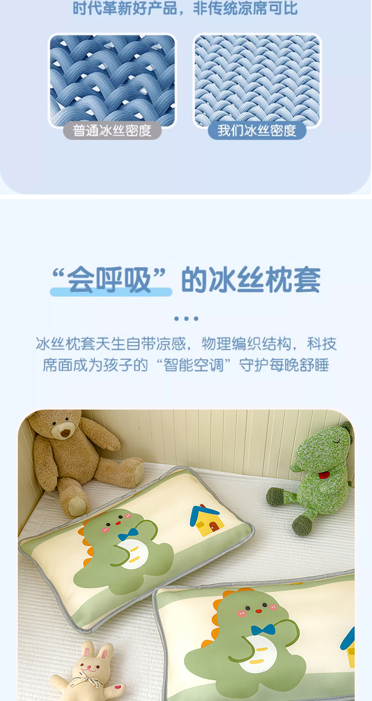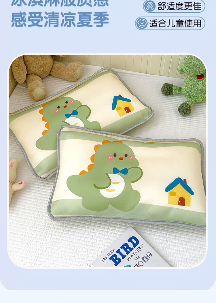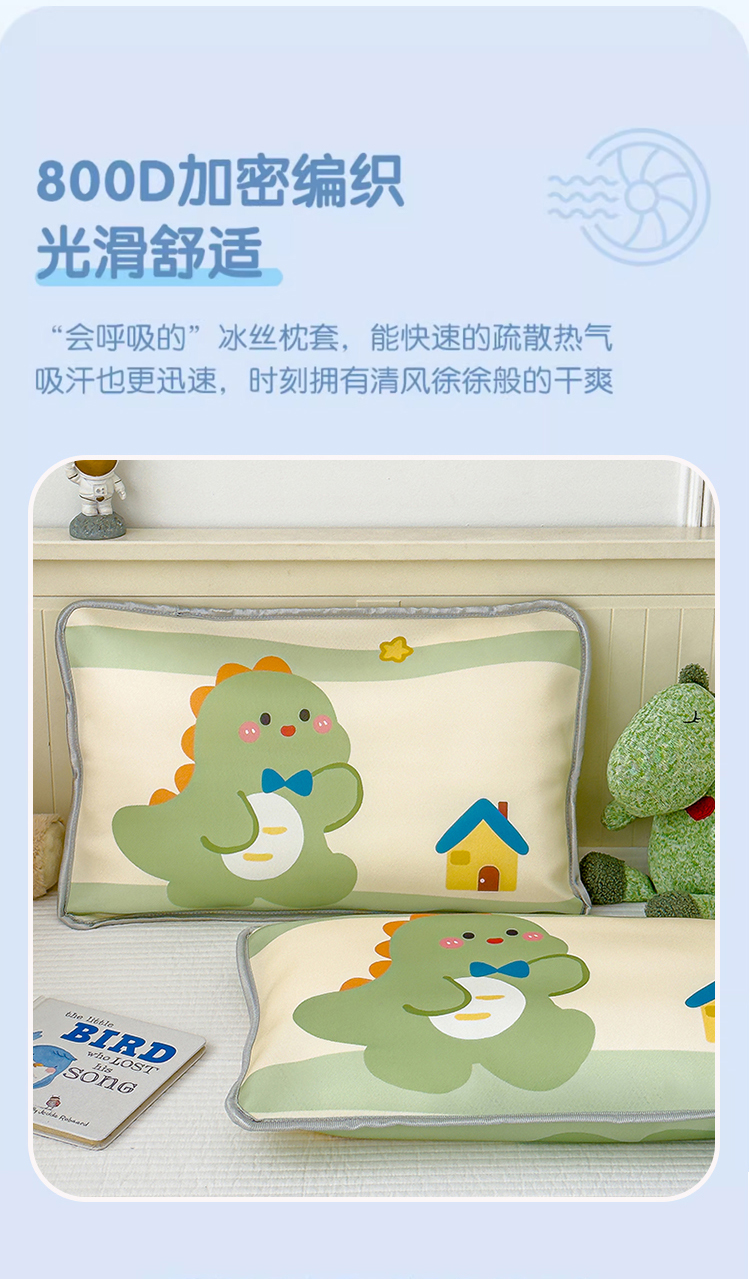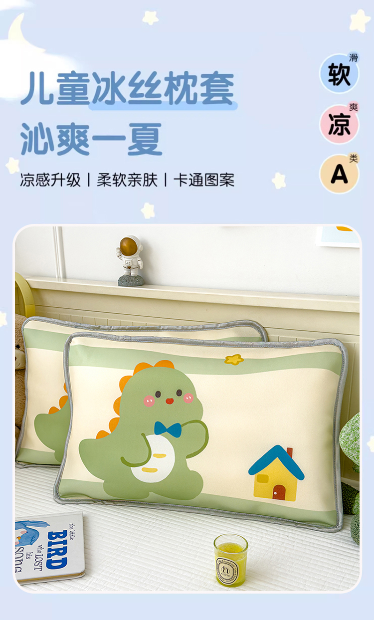 丽美人家纺 2025新款儿童冰丝枕套 恐龙屋