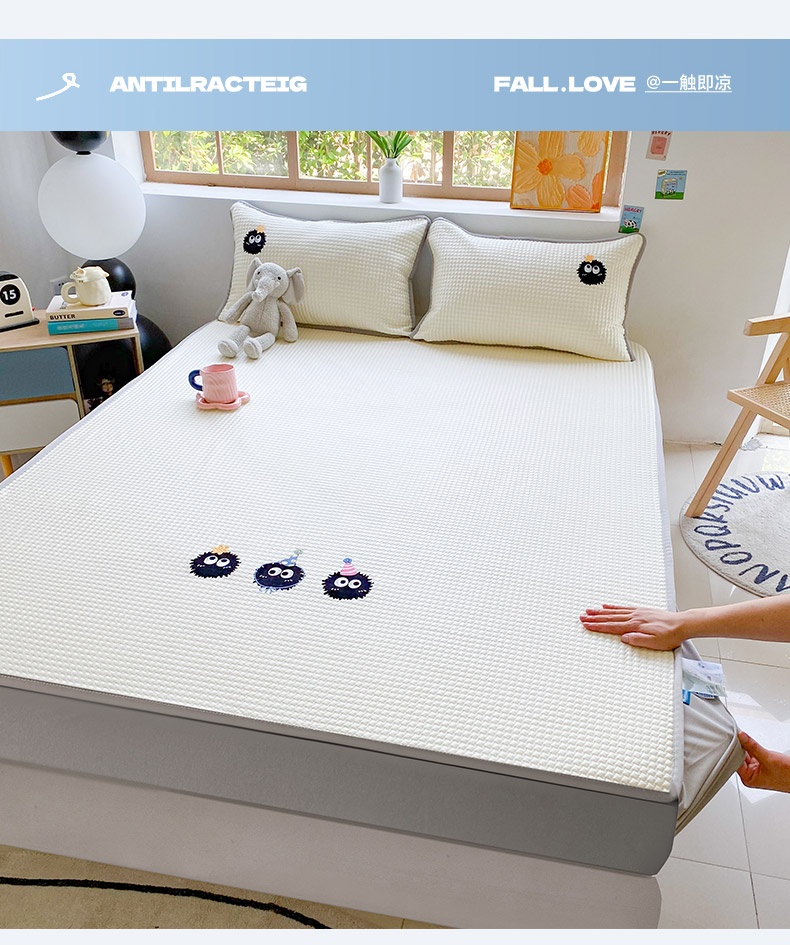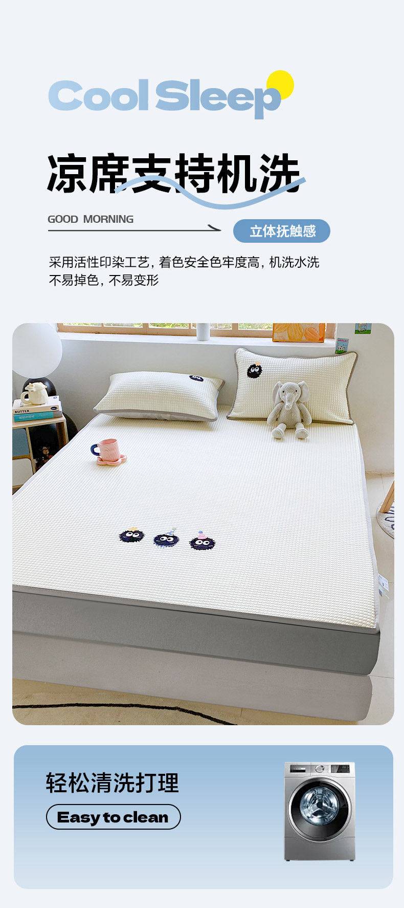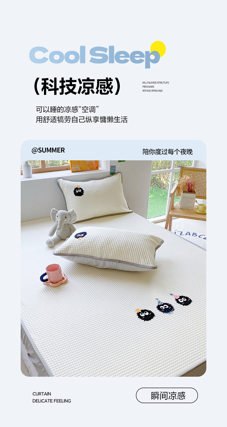 千朵 2025新款冰豆豆绣花凉席 煤球派对