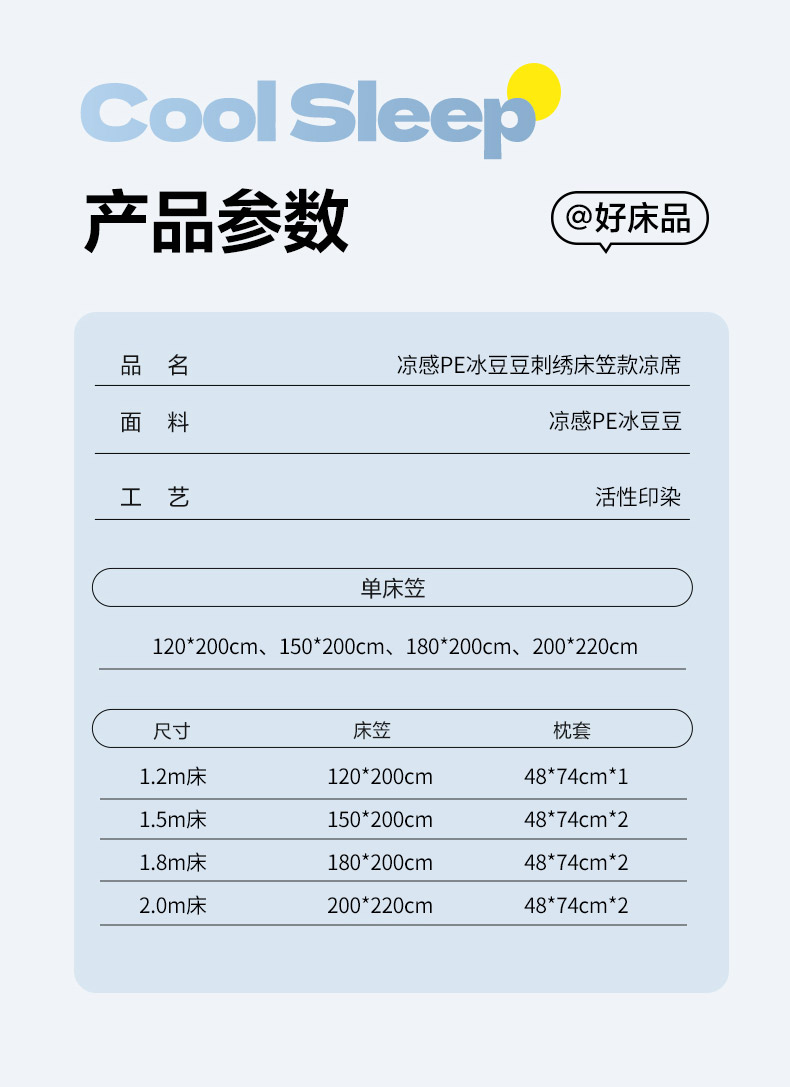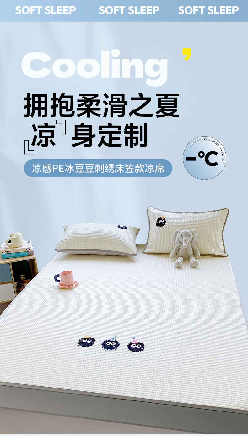 商品名称:千朵 2025新款冰豆豆绣花凉席 煤球派对