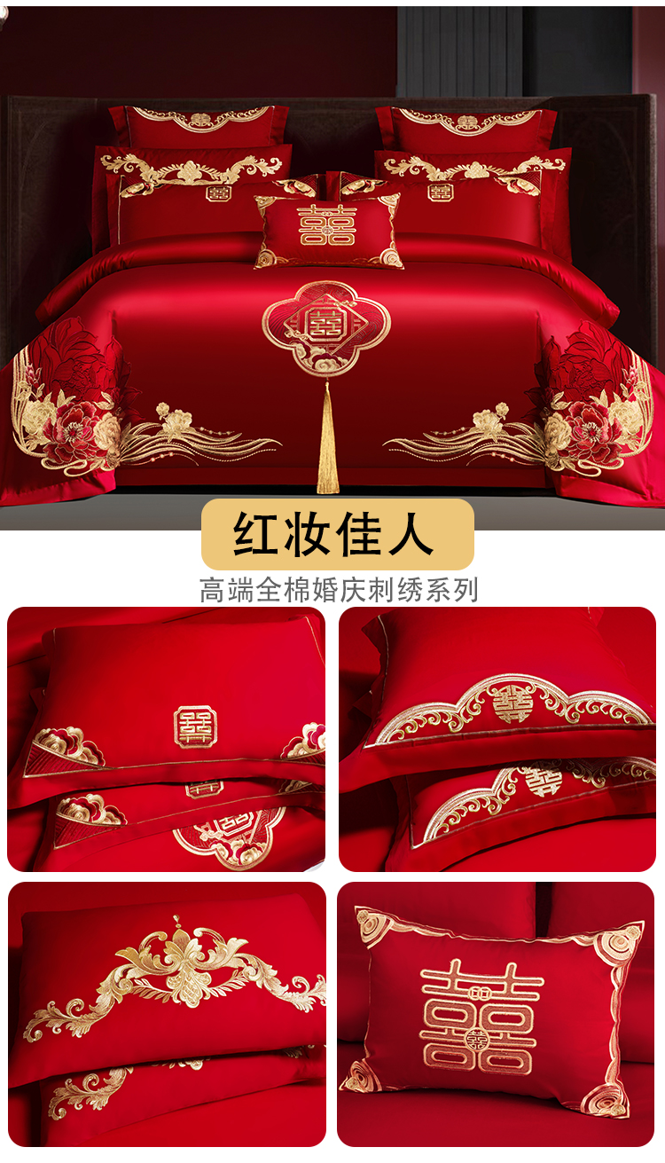 当前位置: 91家纺网 > 商品网购 > 床品套件 > 四件套 > 婚庆四件套 > 用心 2025新款婚庆全棉刺绣四件套多件套系列 红装佳人