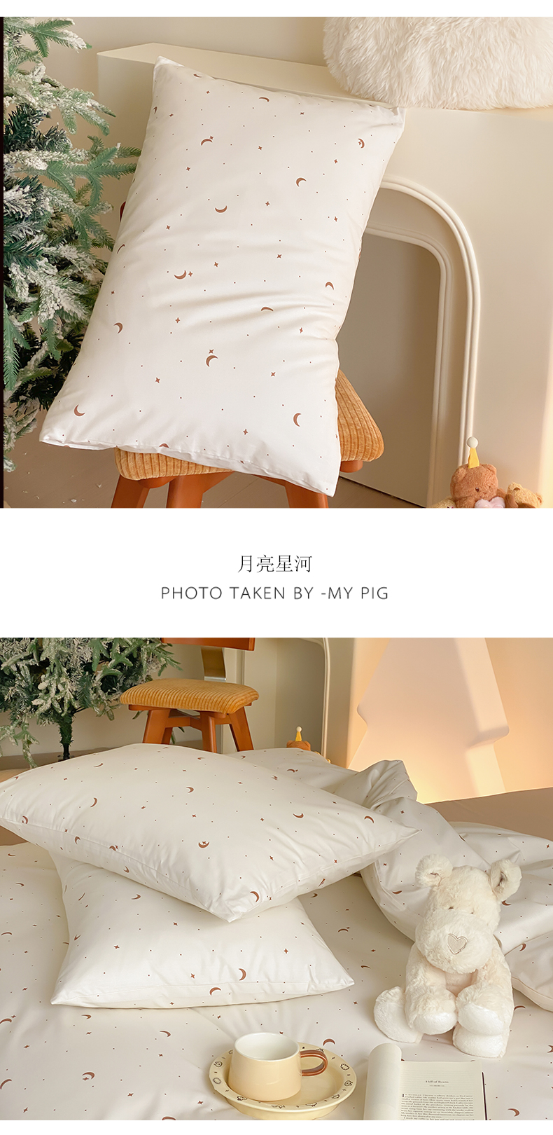 商品名称:Mr.pig猪先生水洗棉 2025新款小清新印花水洗棉全棉枕套 月亮星河