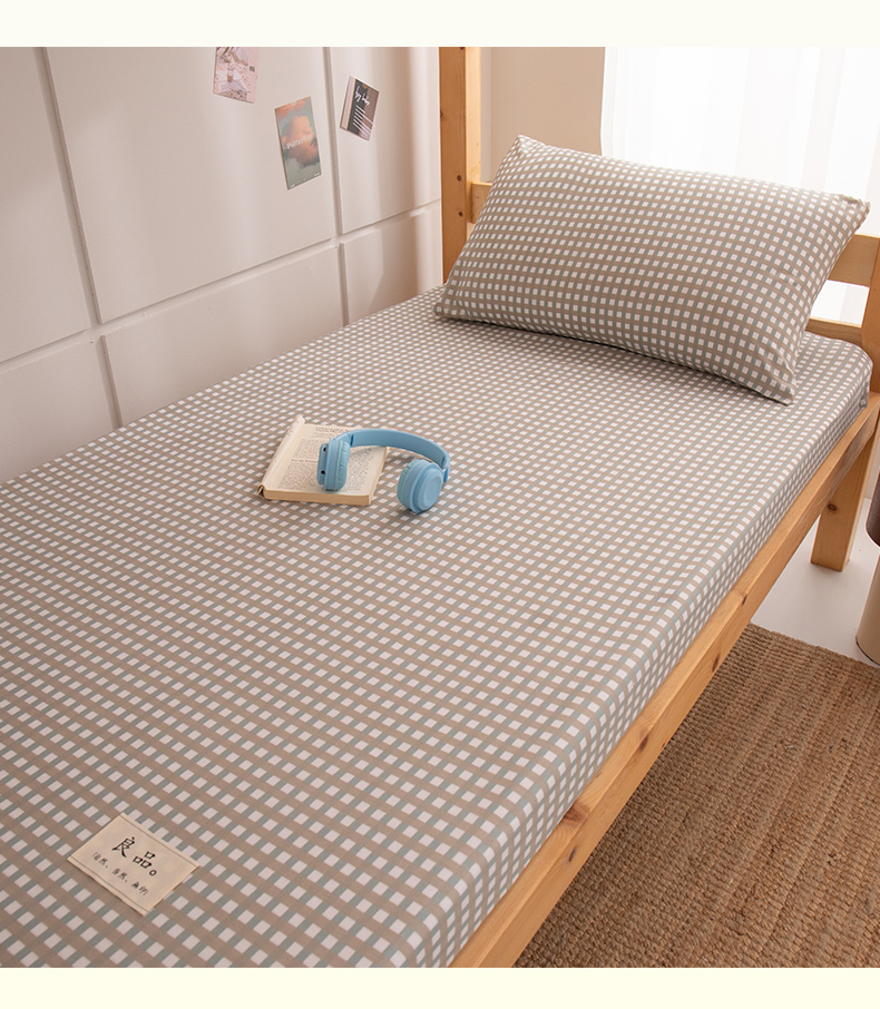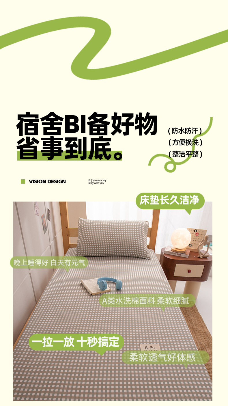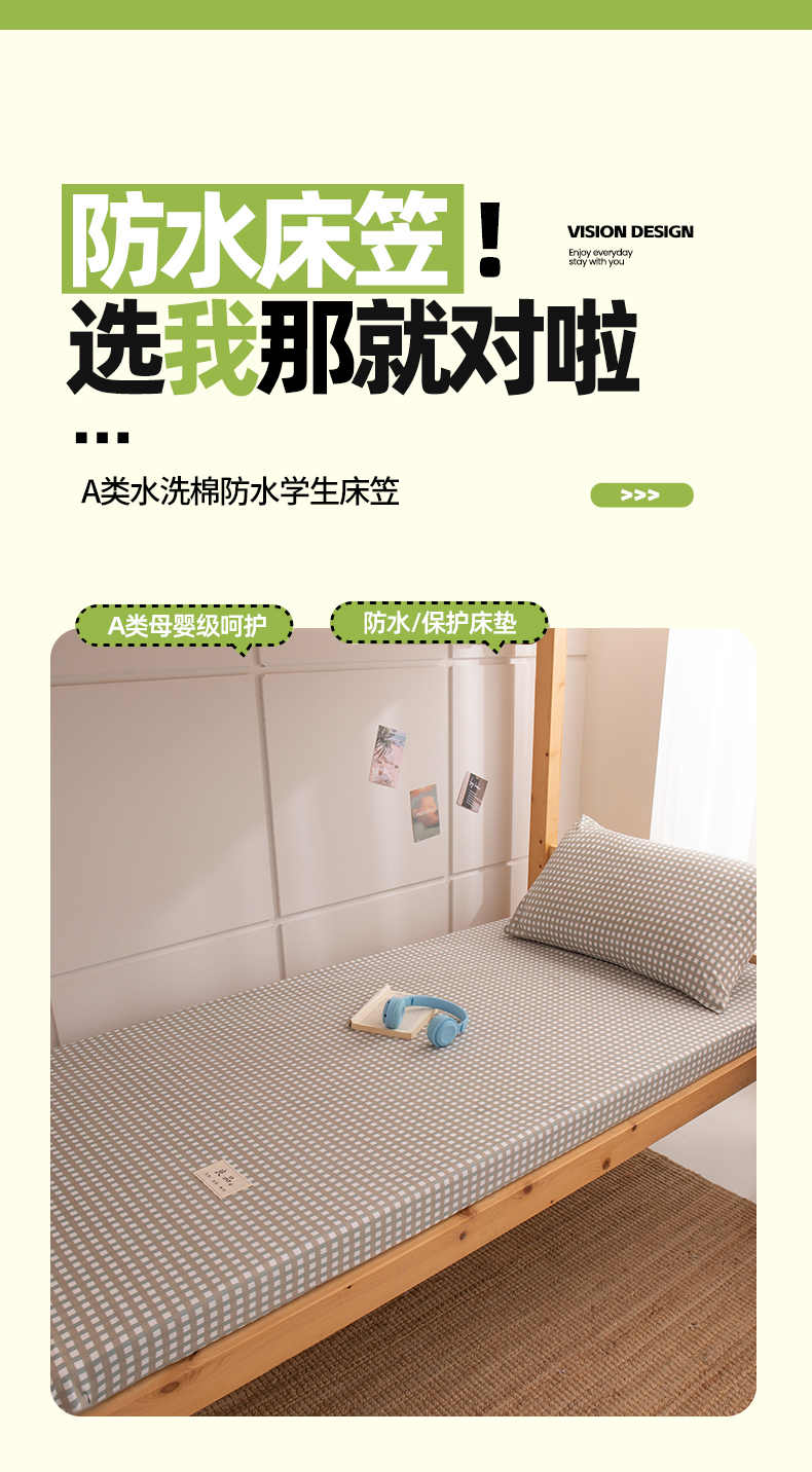 商品名称:暖季家纺2025新款无印风学生防水床笠 防水-果绿小格