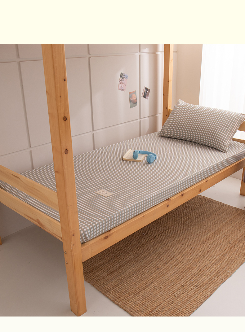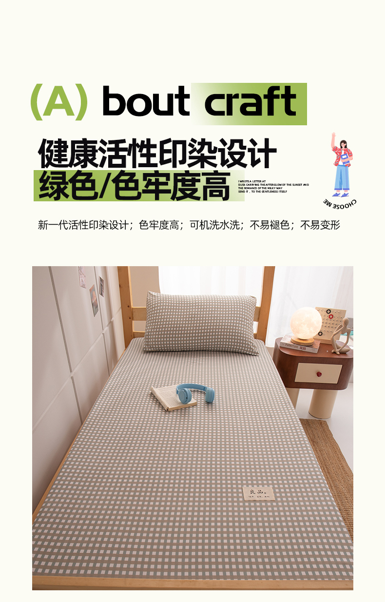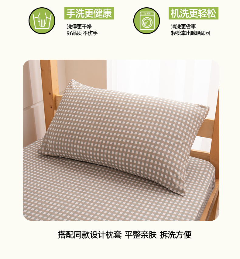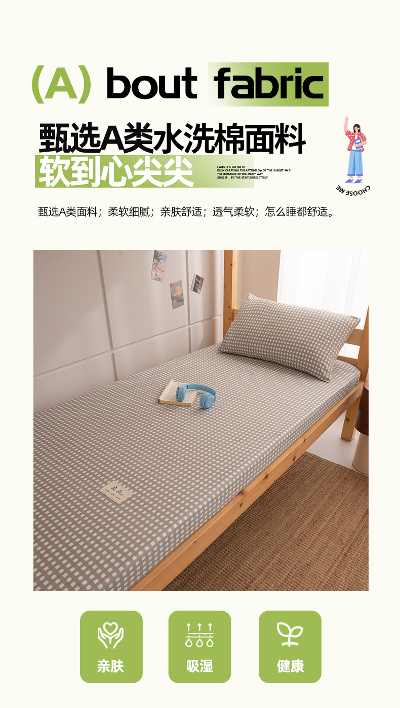 商品名称:暖季家纺2025新款无印风学生防水床笠 防水-果绿小格