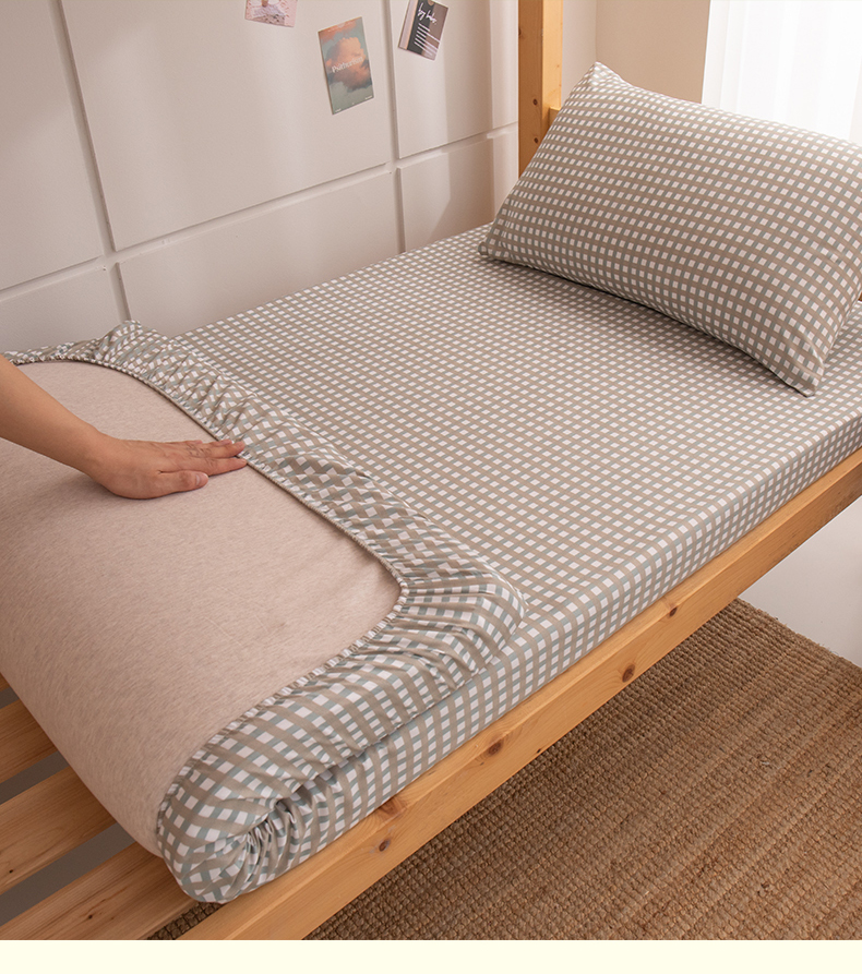 暖季家纺2025新款无印风学生防水床笠 防水-果绿小格