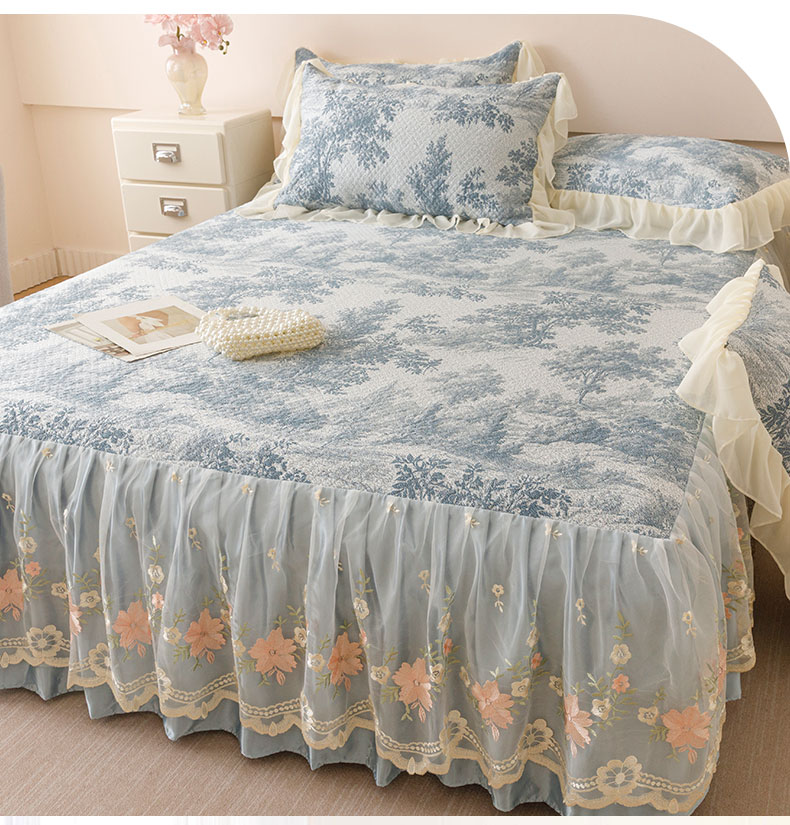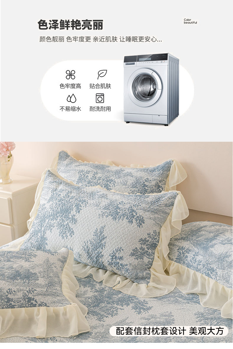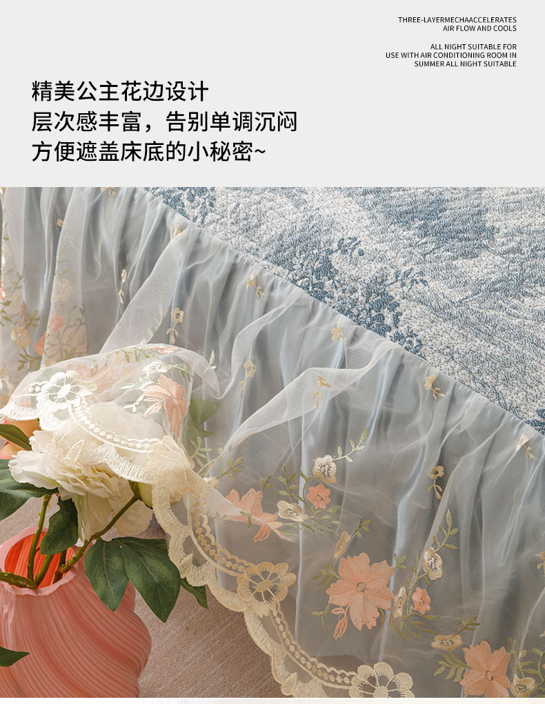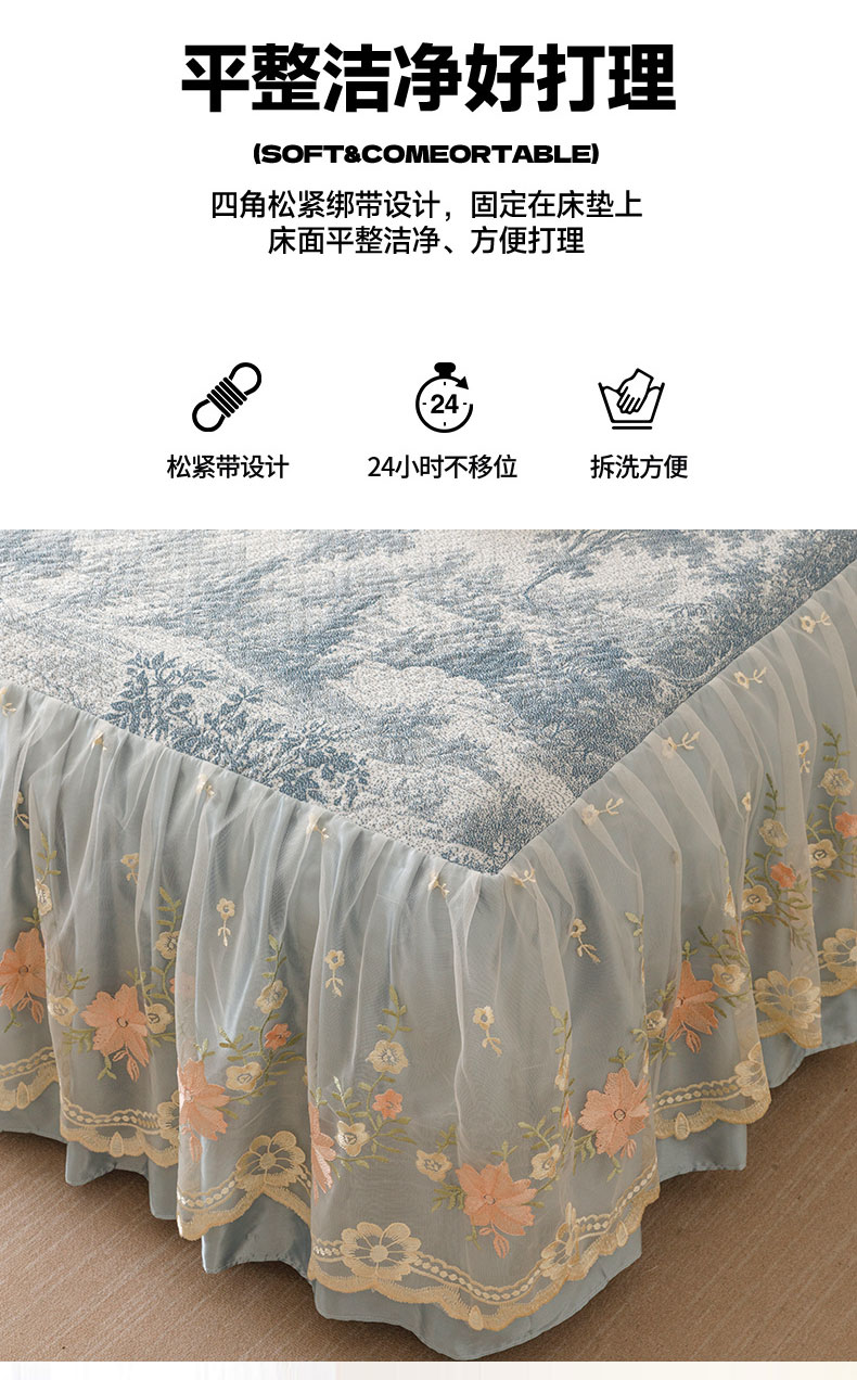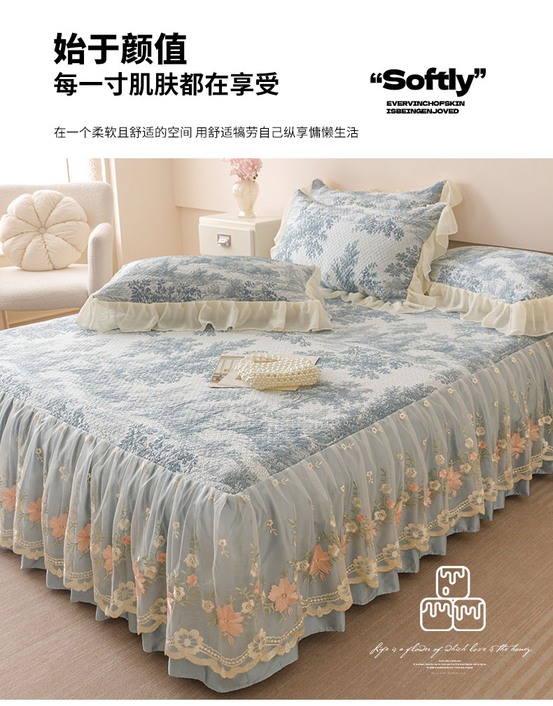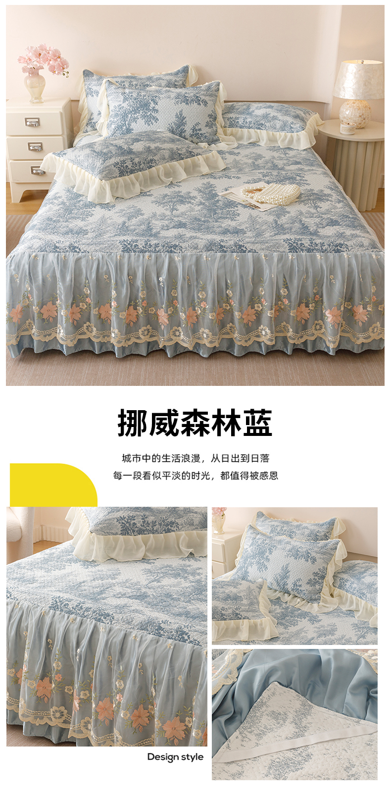• 91家纺网 家纺一手货源 找家纺 好儿喜家纺 2025新款海洋丝凉感豆豆床裙凉席-巴黎玫瑰 挪威森林蓝