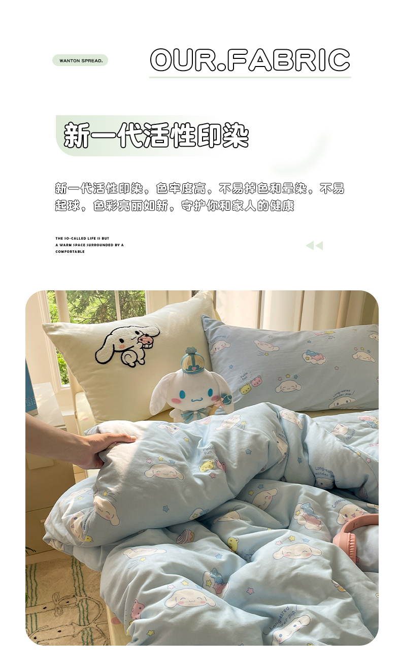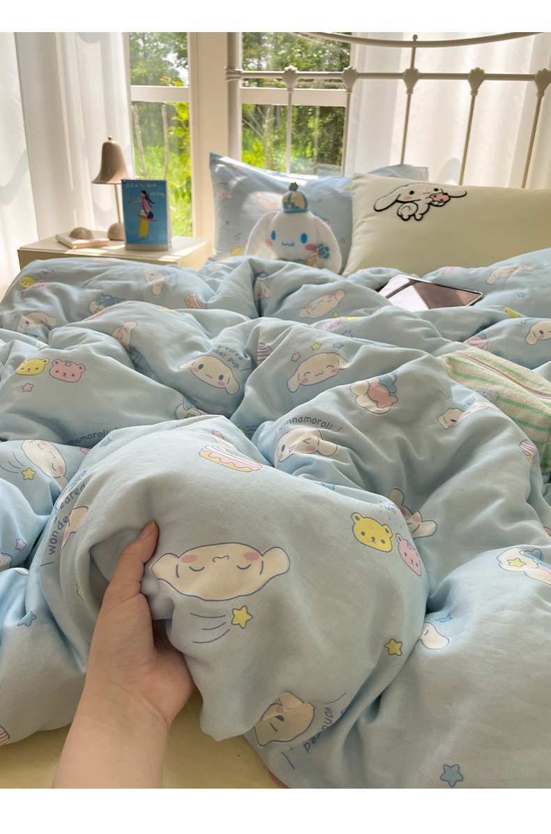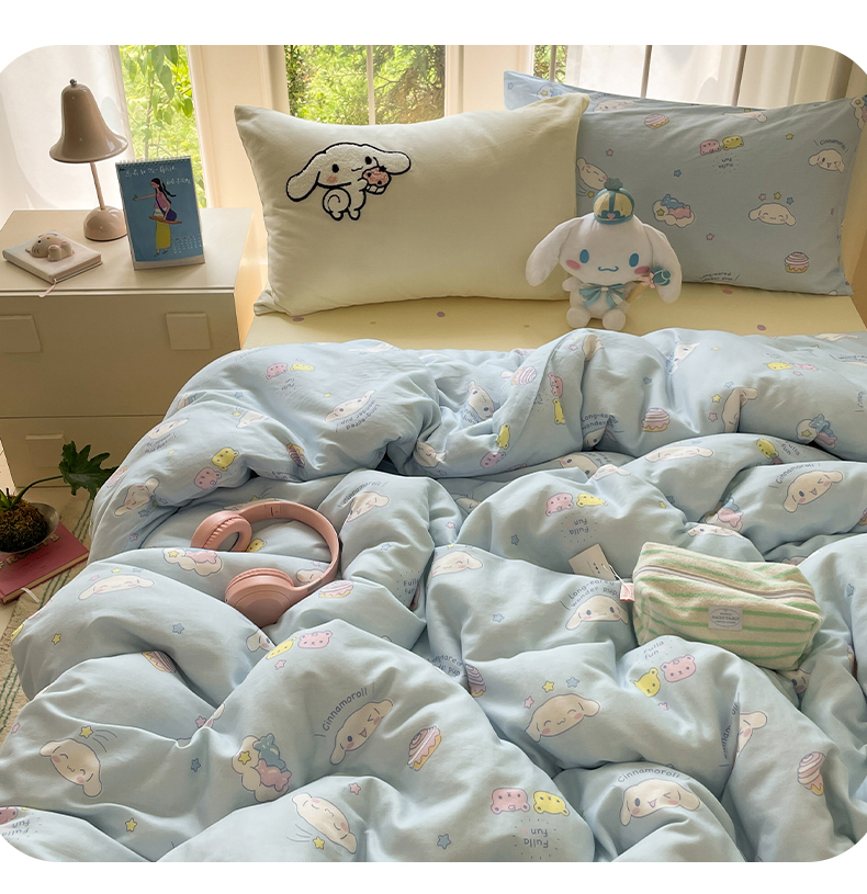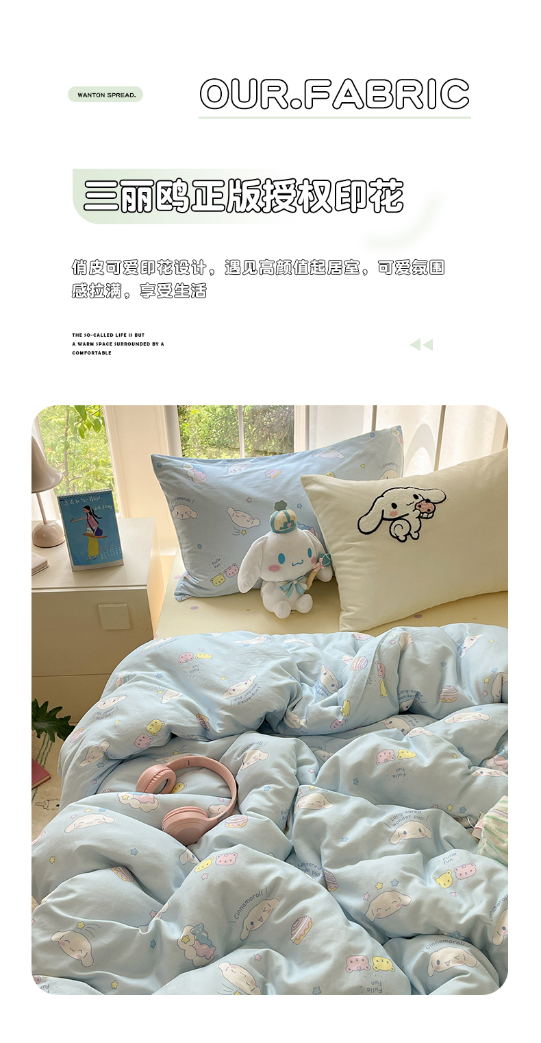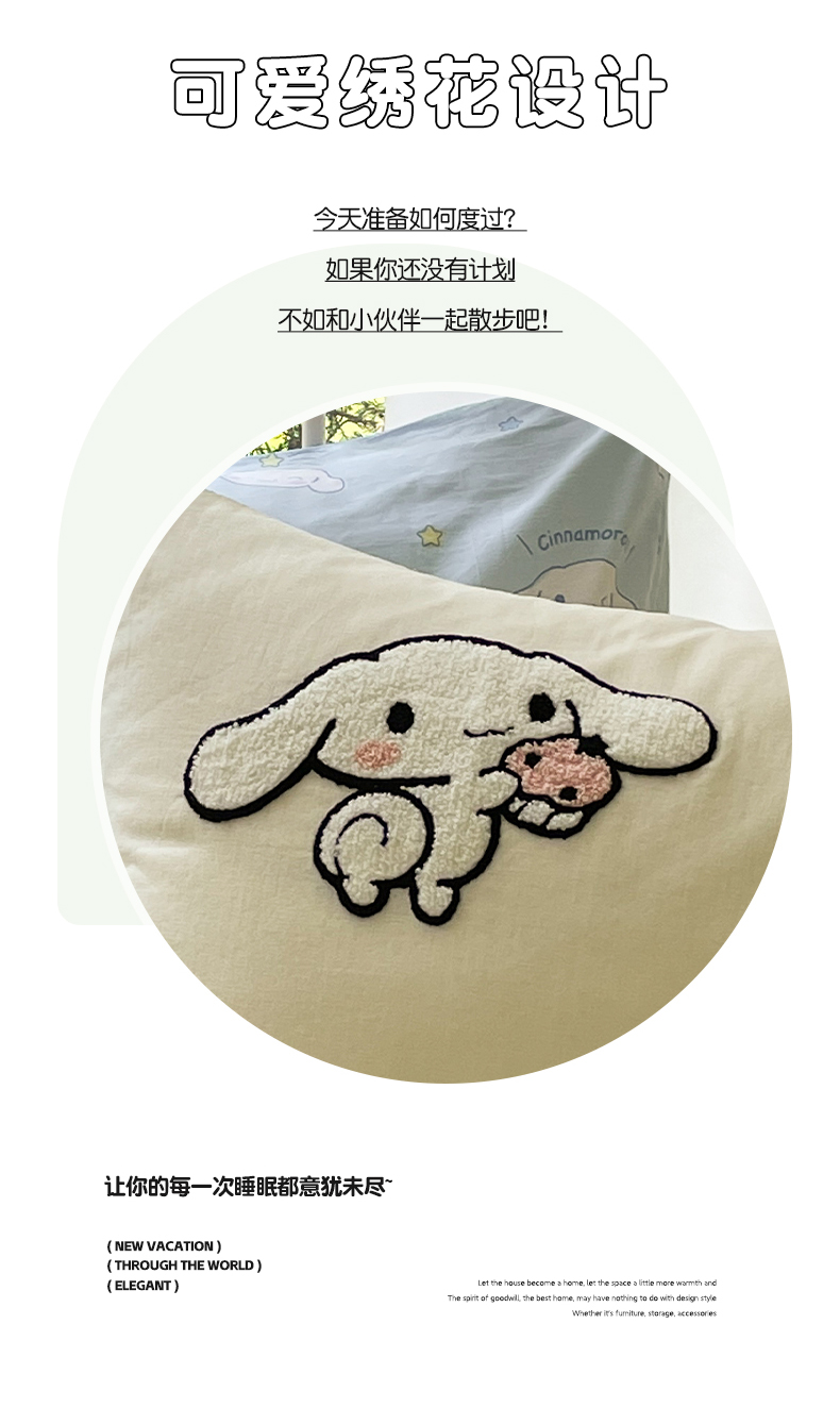 当前位置: 91家纺网 > 商品网购 > 床品套件 > 四件套 > 全棉普通四件套 > 蓝邻家纺 2025年新款全棉纯棉双层纱三丽鸥刺绣四件套系列 呆萌大耳狗