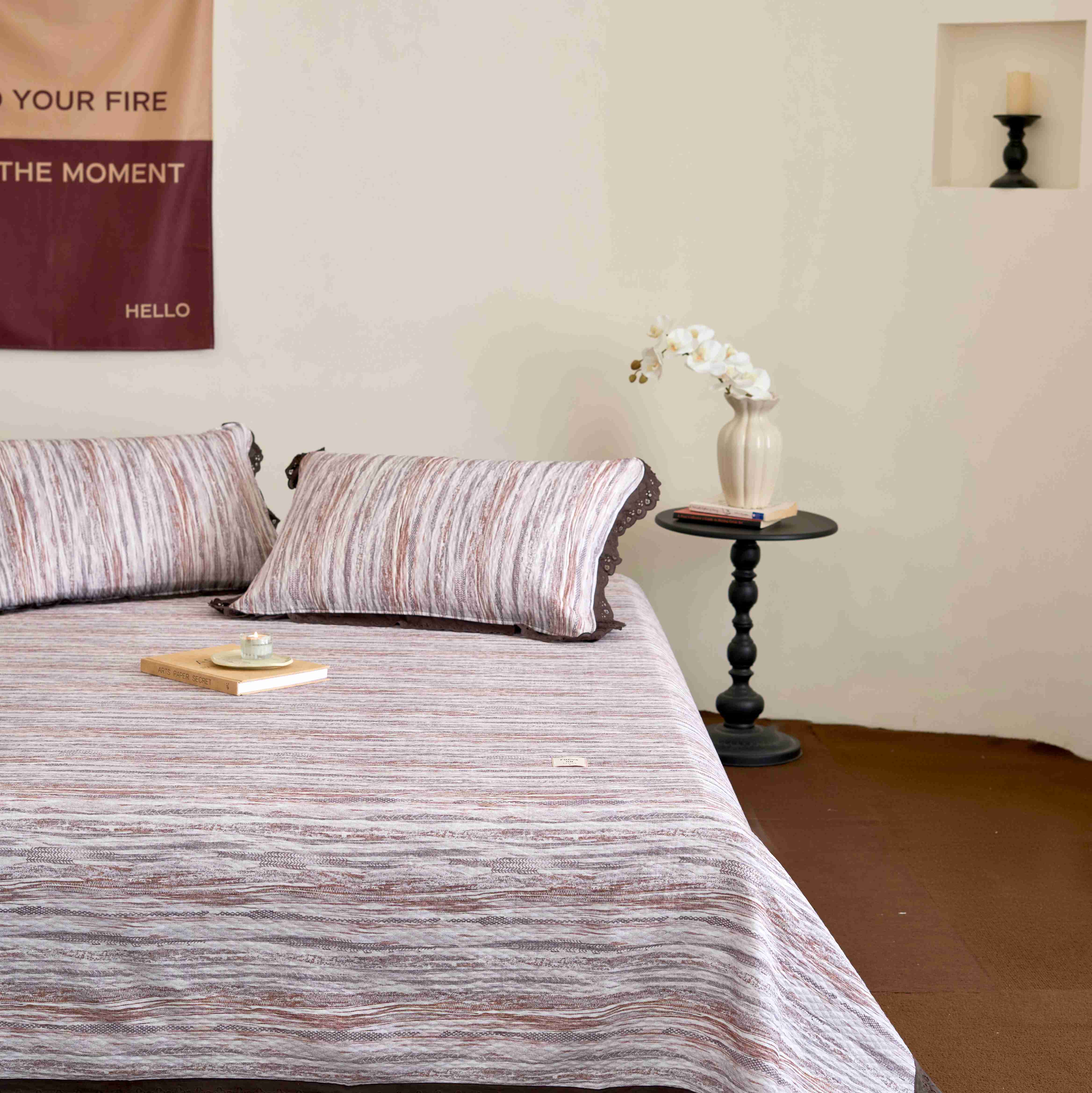 (总)月夏 2025新款全棉色织四件套-星空点点系列,星空点点-红咖,星空点点-灰色,星空点点-咖色