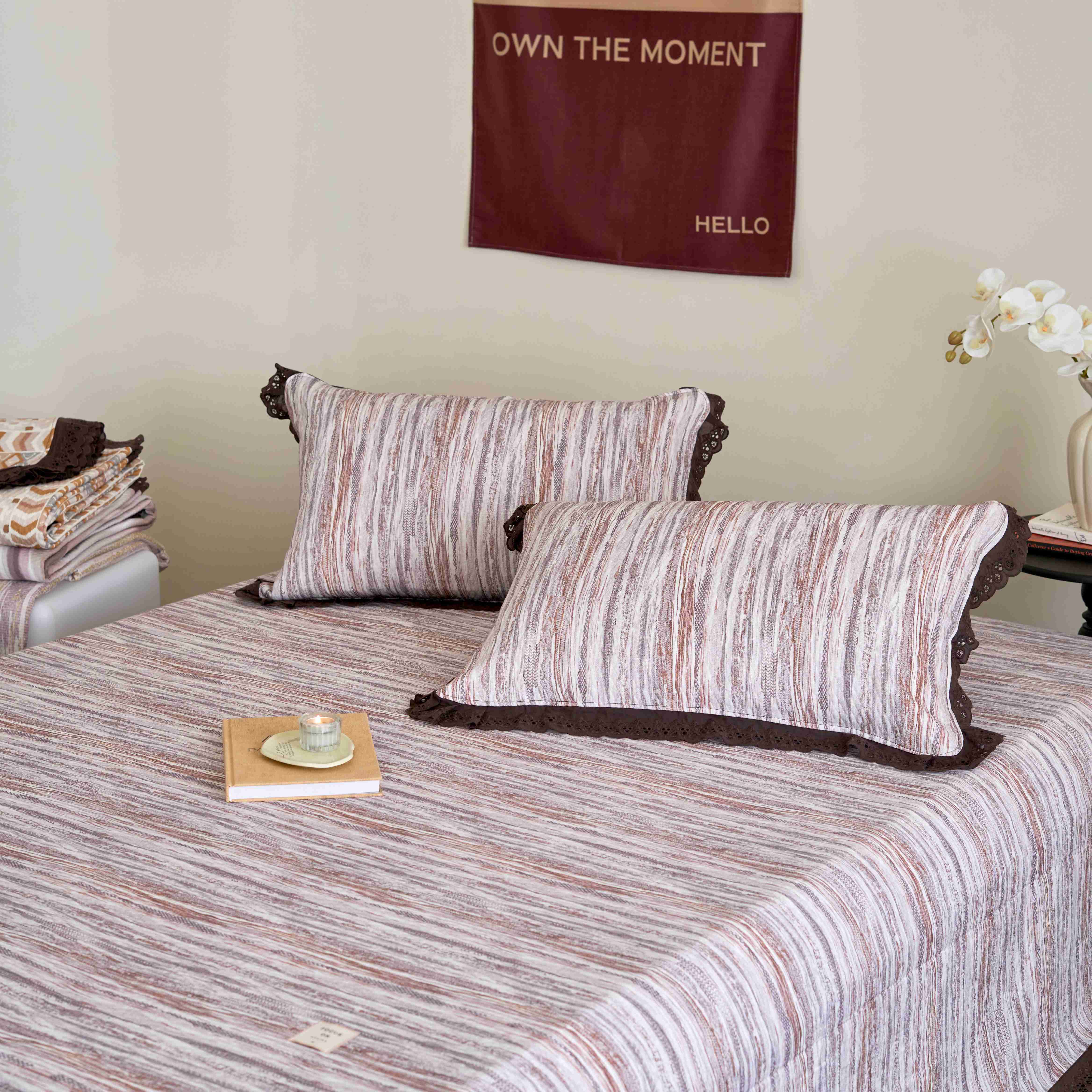 月夏 2025新款春夏全棉纯棉提花床盖三件套 旷野-绿