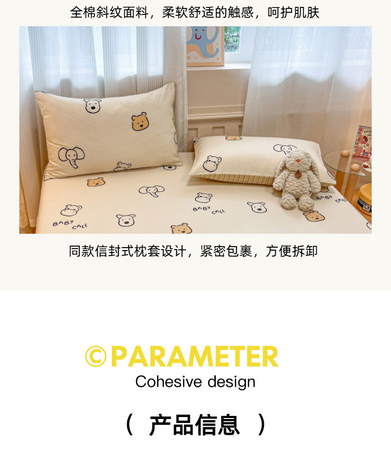 (总)呗旺鹿 2026新款全棉40支12868田园卡通小清新系列四件套,雅柔,蓝叶兔,软糖萌宠,三小只,童话乐园,小熊艺语,樱桃小象,H萝卜兔,L红茶兔兔,L欧包小奶兔,L浅糖兔叽