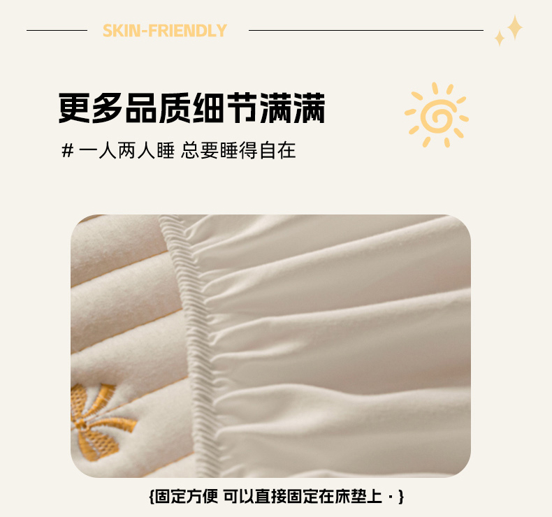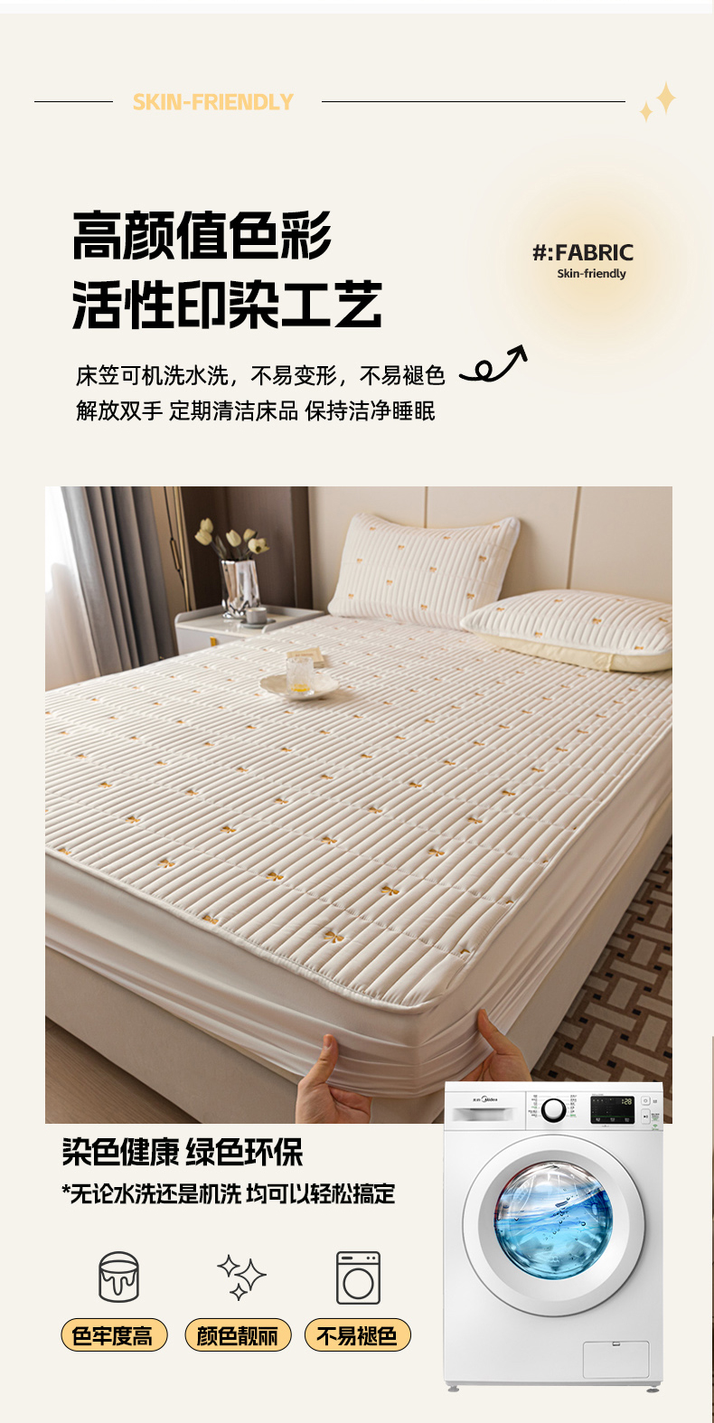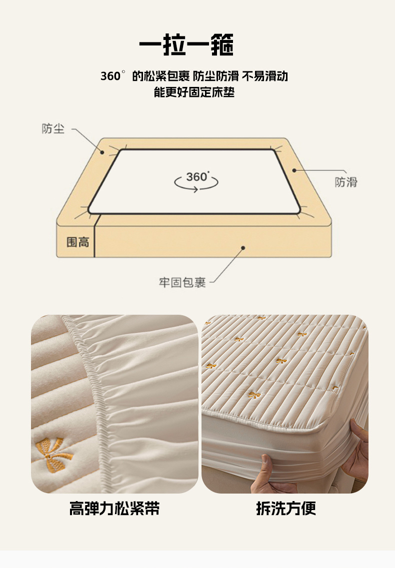 商品名称:(总)暖季家纺 2025新款A类亲肤面料夹棉绣花床笠-防水款