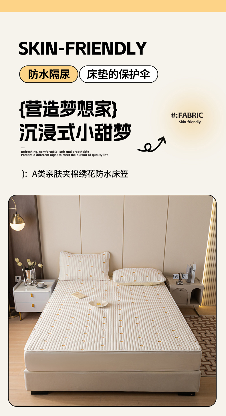 (总)暖季家纺 2025新款A类亲肤面料夹棉绣花床笠-防水款