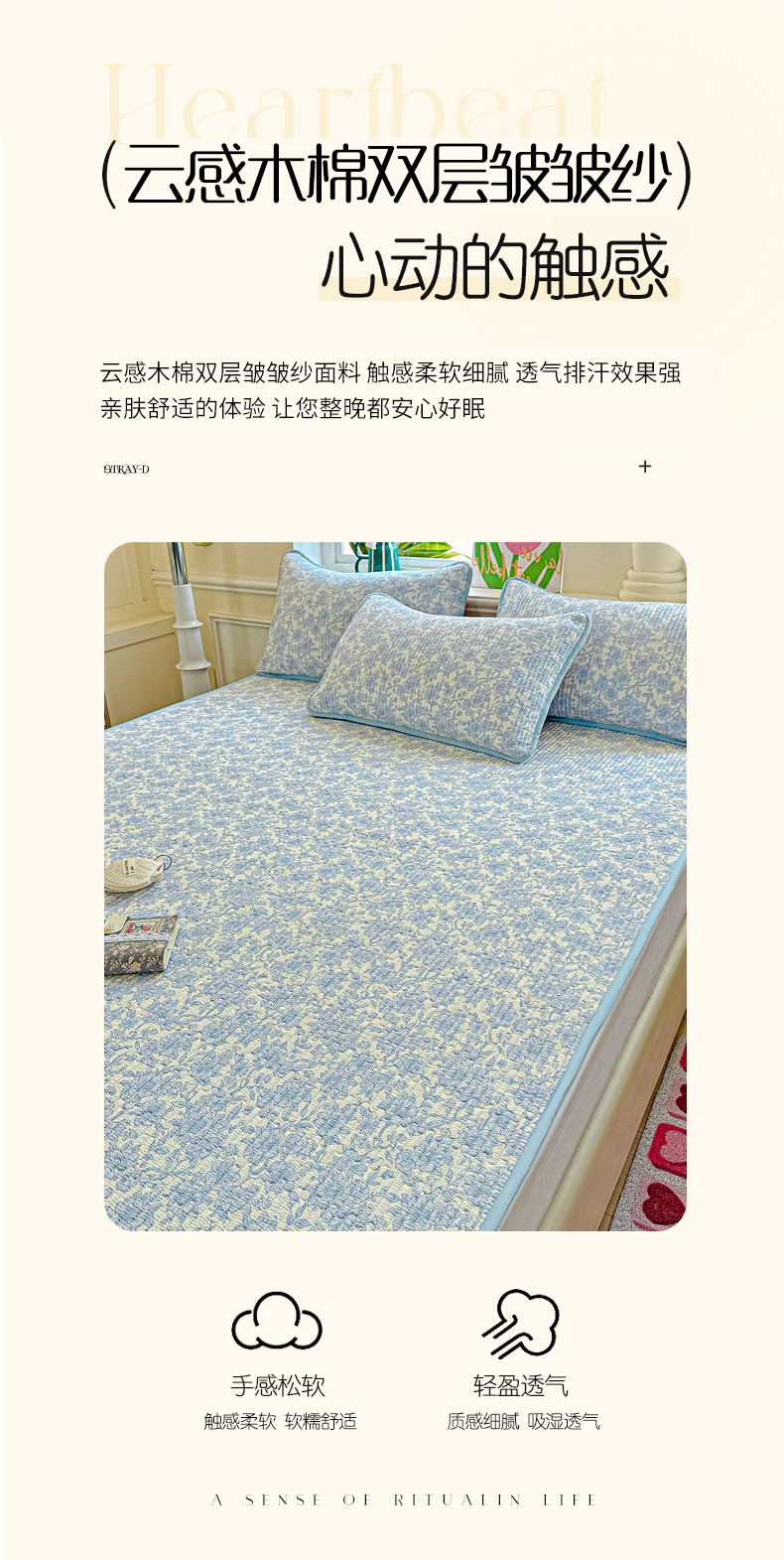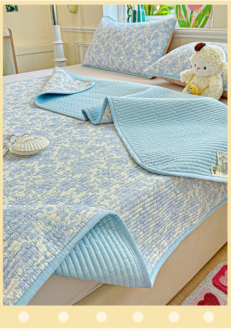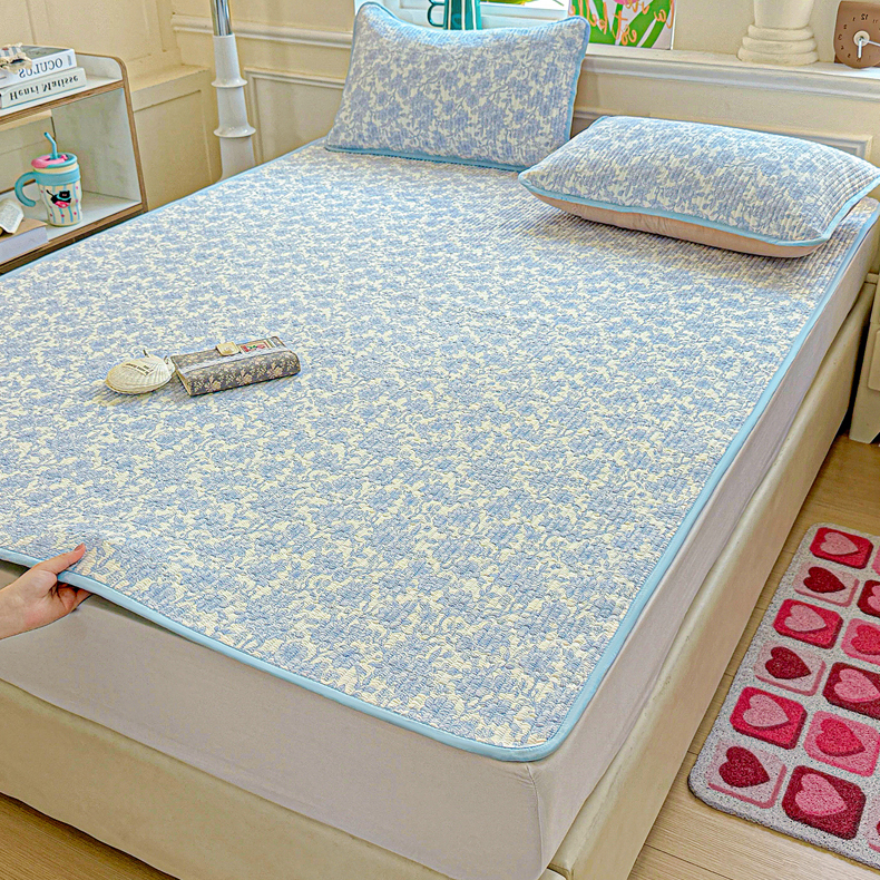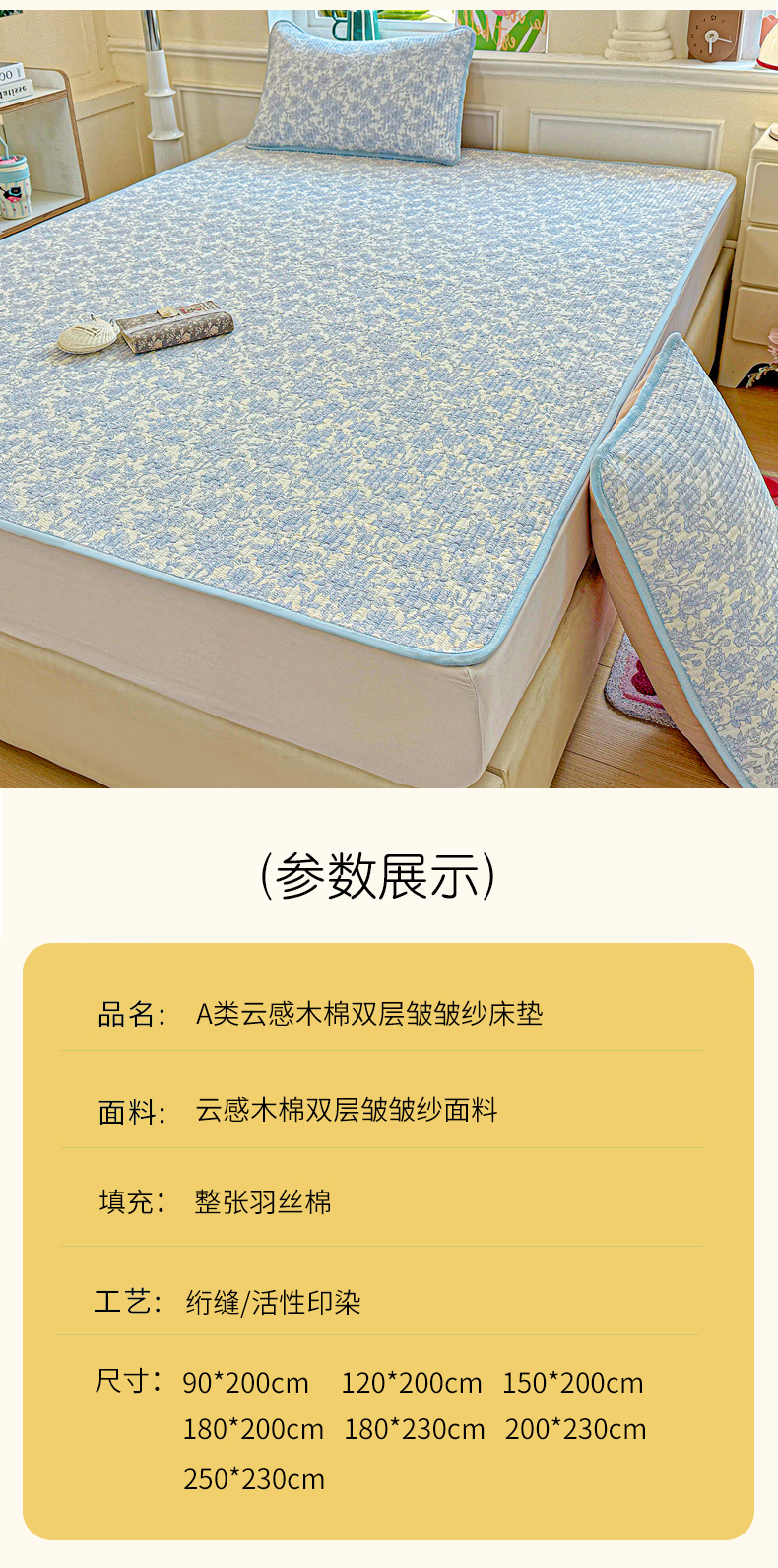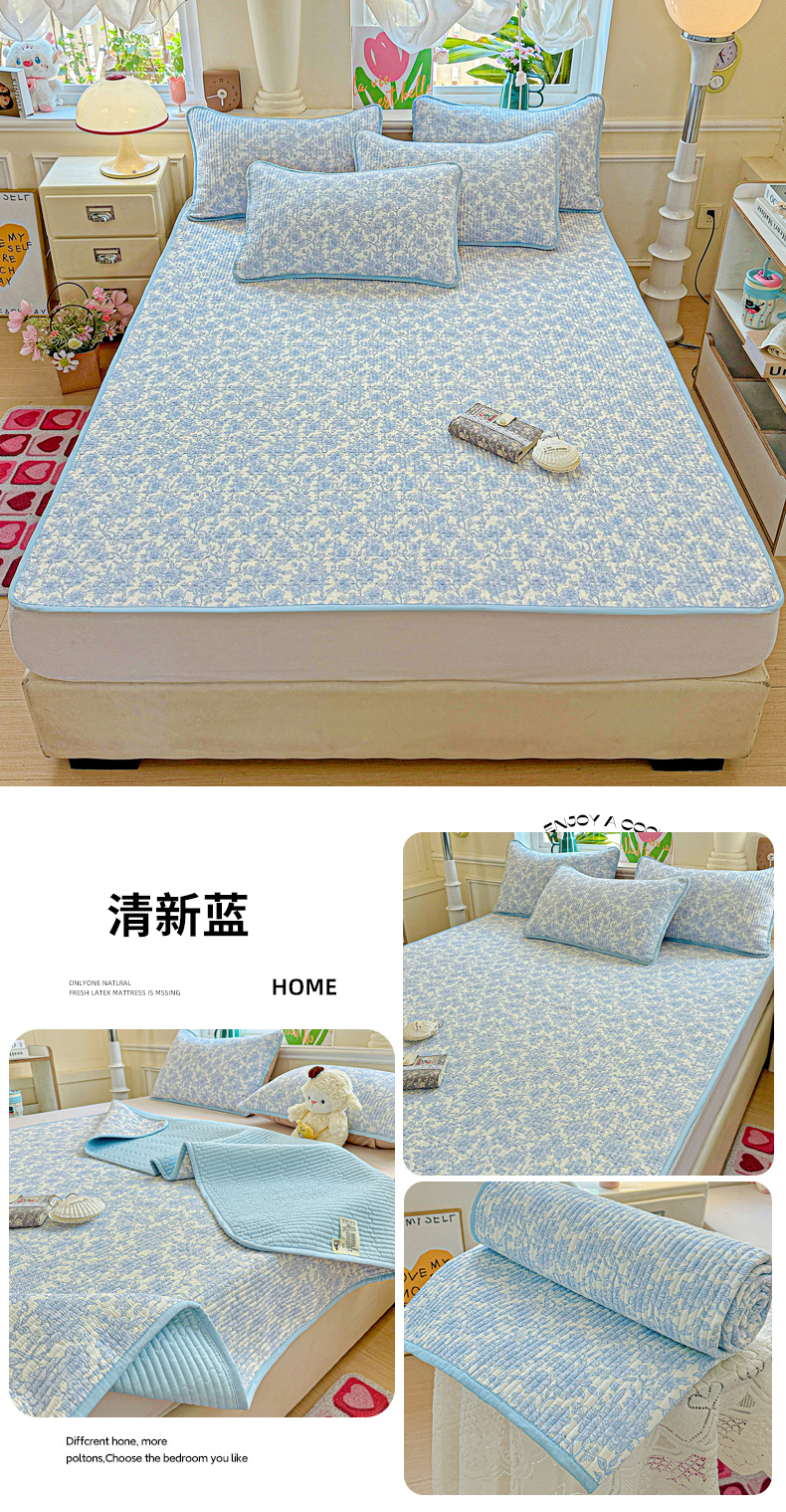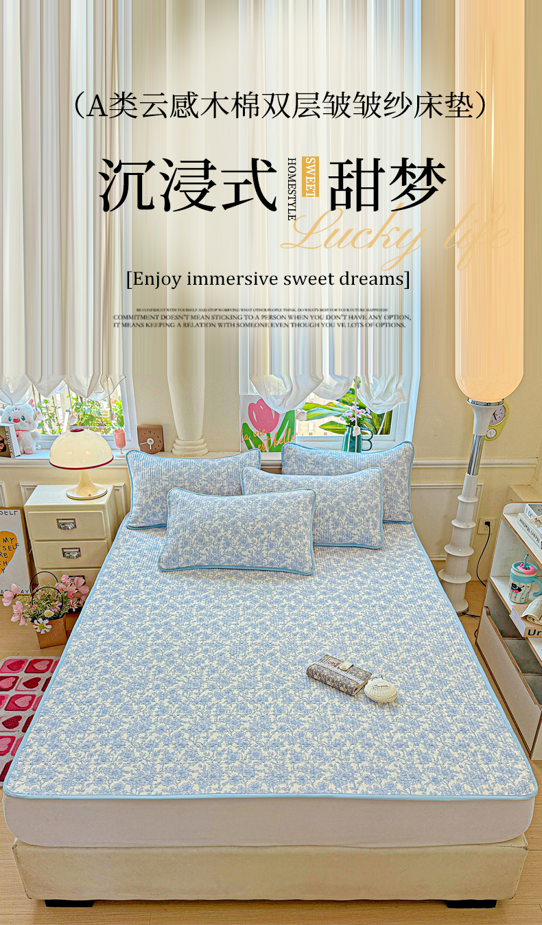 • 91家纺网 家纺一手货源 找家纺 恒尚居 2025新款云感床褥垫双层皱皱纱学生软床垫床护垫-四季款-系列一 清新蓝