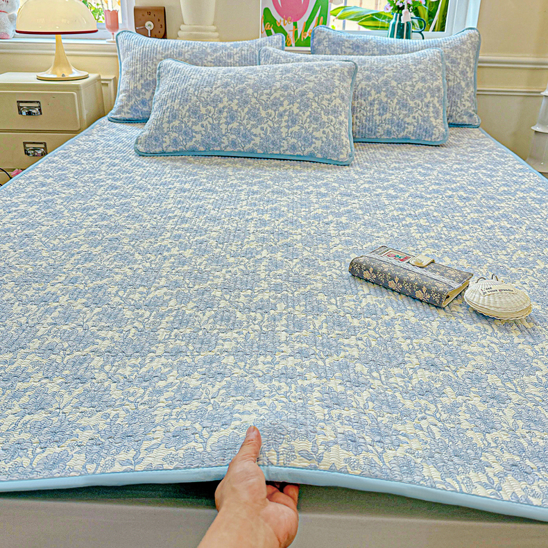 恒尚居 2025新款云感床褥垫双层皱皱纱学生软床垫床护垫-四季款-系列一 清新蓝