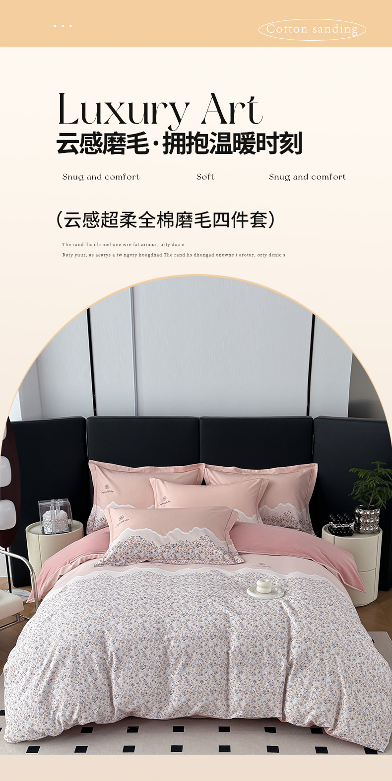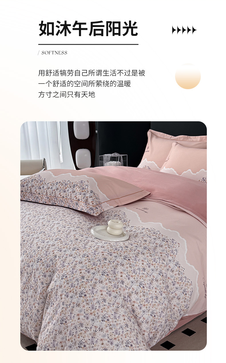 当前位置: 91家纺网 > 商品网购 > 床品套件 > 四件套 > 全棉普通四件套 > 艾迪尚家纺 2025新款云感超柔全棉磨毛印花四件套系列 夕月-粉
