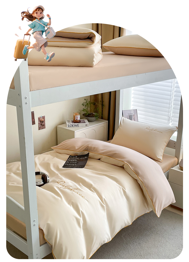 笙意家纺 2025新款亲肤水洗棉麻绳款学生三件套-安琪系列 安琪-奶昔白+奶茶