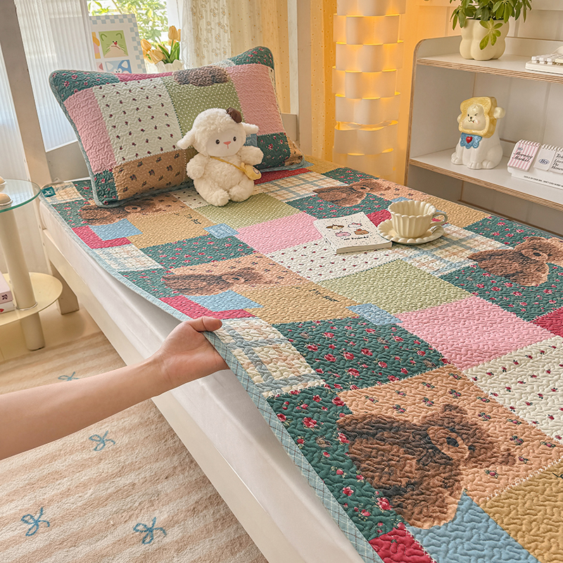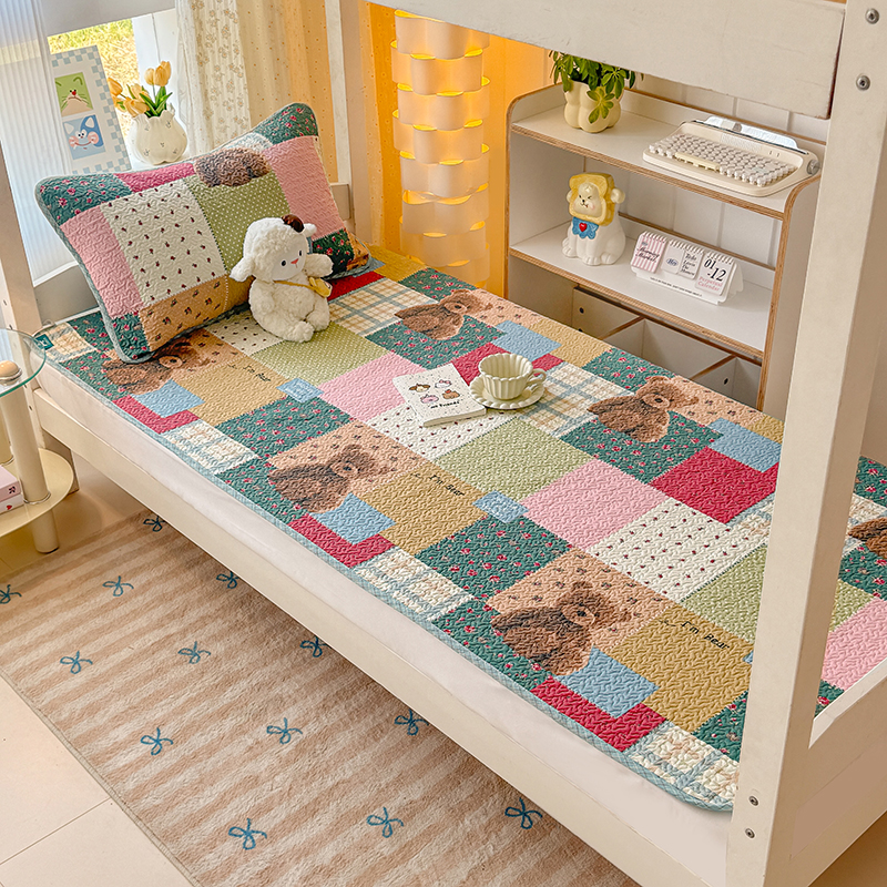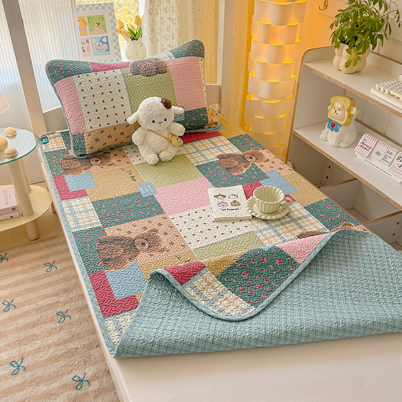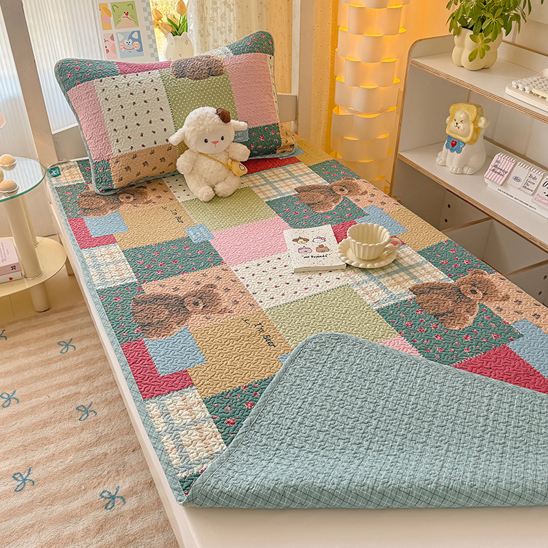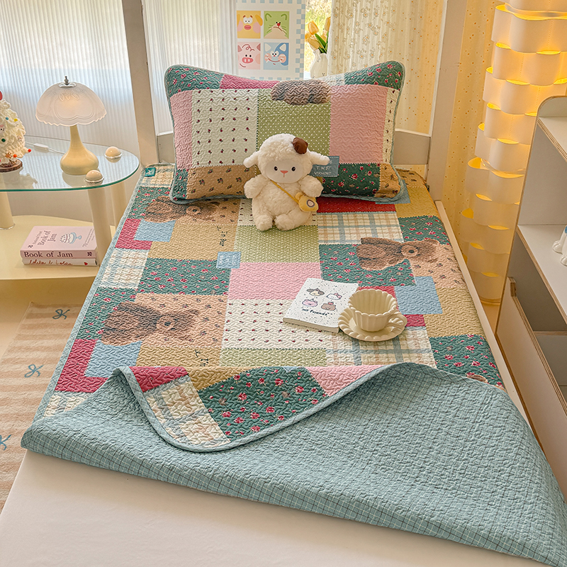 (总)期遇家居 2025新款13372全棉印花学生床盖双面纯棉宿舍床盖,百福熊,布偶兔,草莓兔,卡茜欧,蓝格子,律动爱心,摩登之恋,香香熊猫,紫葡萄