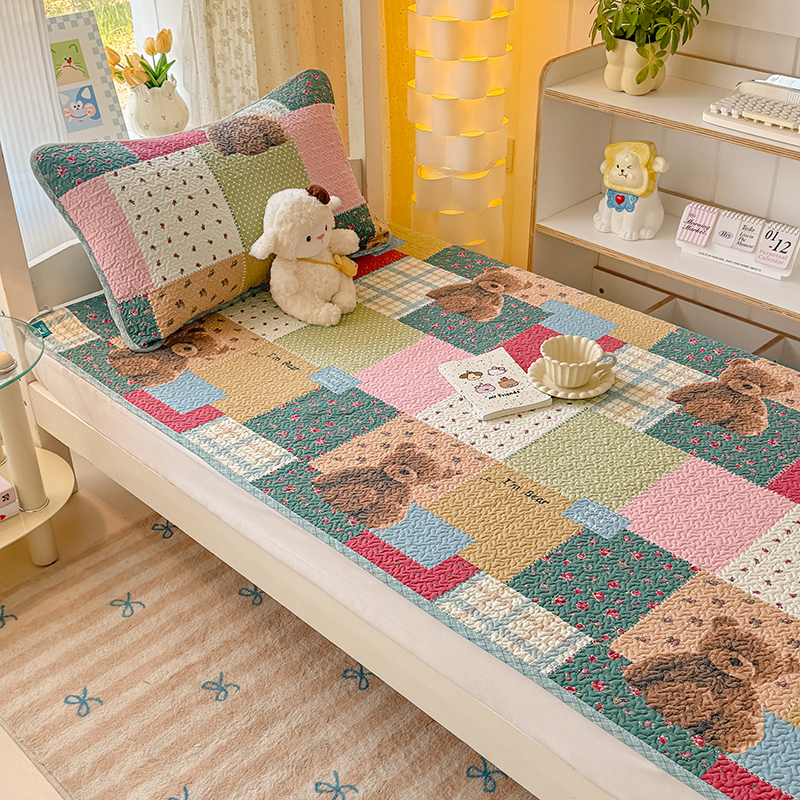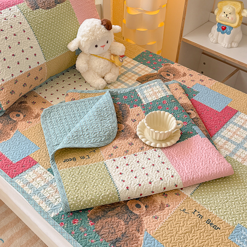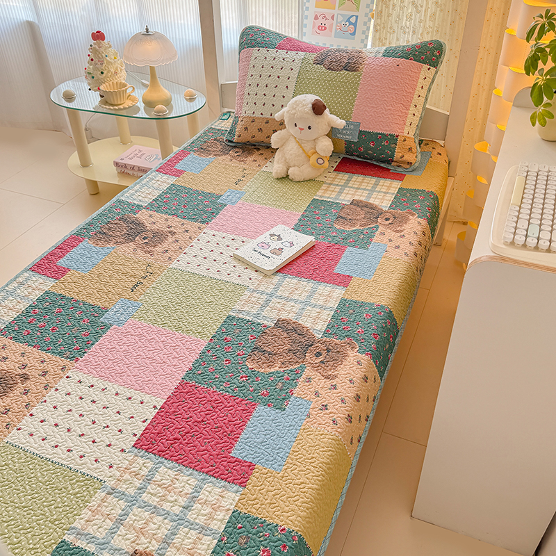 期遇家居 2025新款13372全棉印花学生床盖双面纯棉宿舍床盖 百福熊