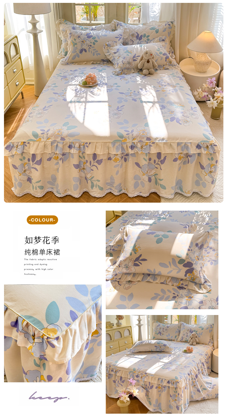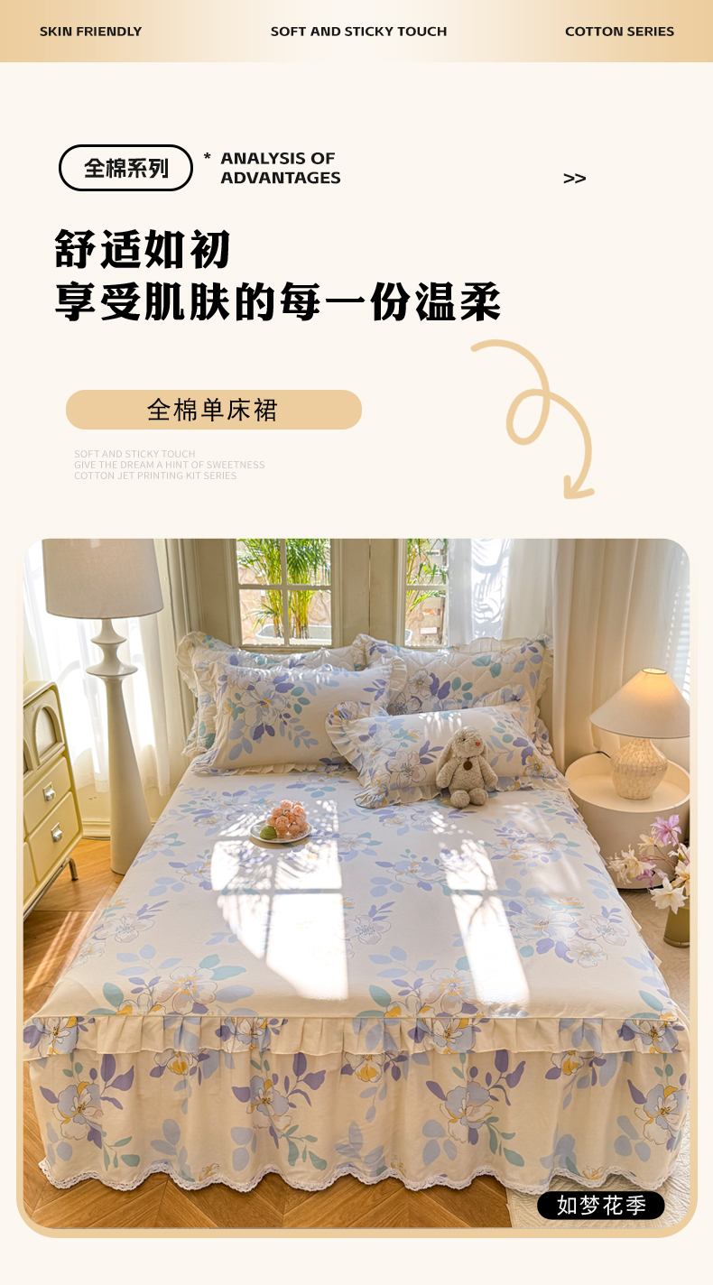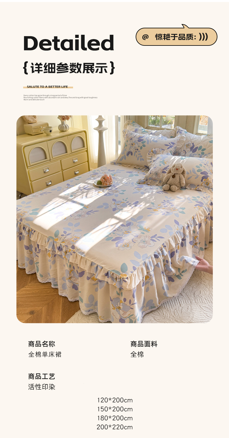 商品名称:美达家纺 2025新款全棉纯棉蕾丝小花边单层床裙单品床裙床裙单件 如梦花季