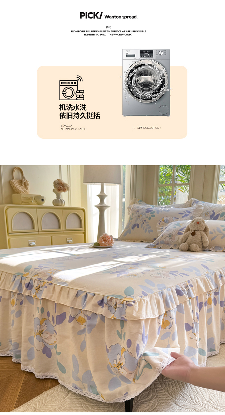 (总)美达家纺 2025新款全棉AB版单层床裙,解语花,南湘,沁雨花叶,悦棠