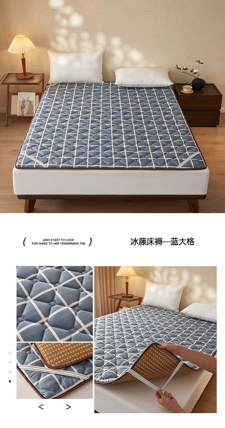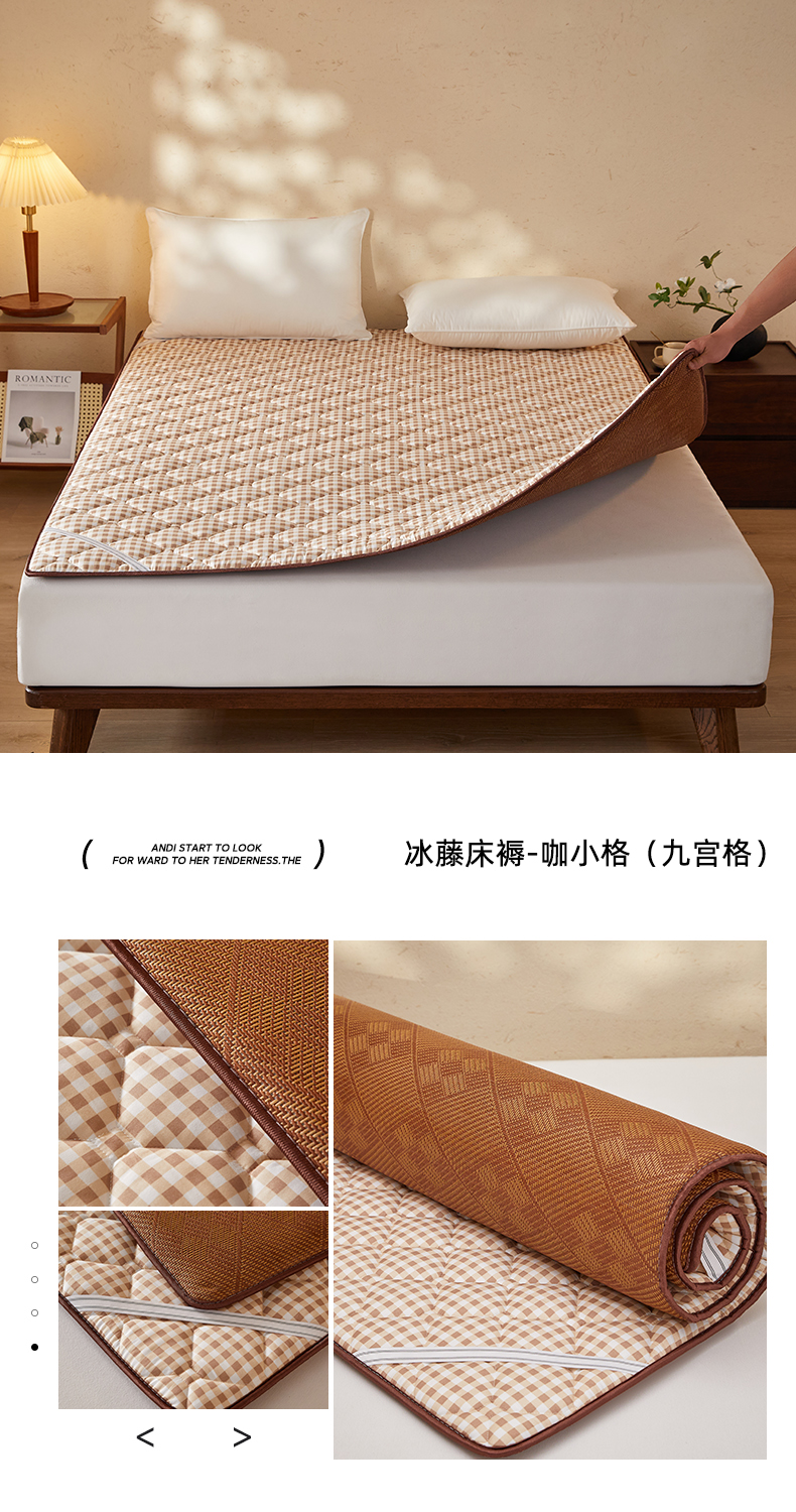 花言狐语 2025新款双面可用冰藤夹棉床褥系列-大床款 冰藤床褥-咖小格(九宫格