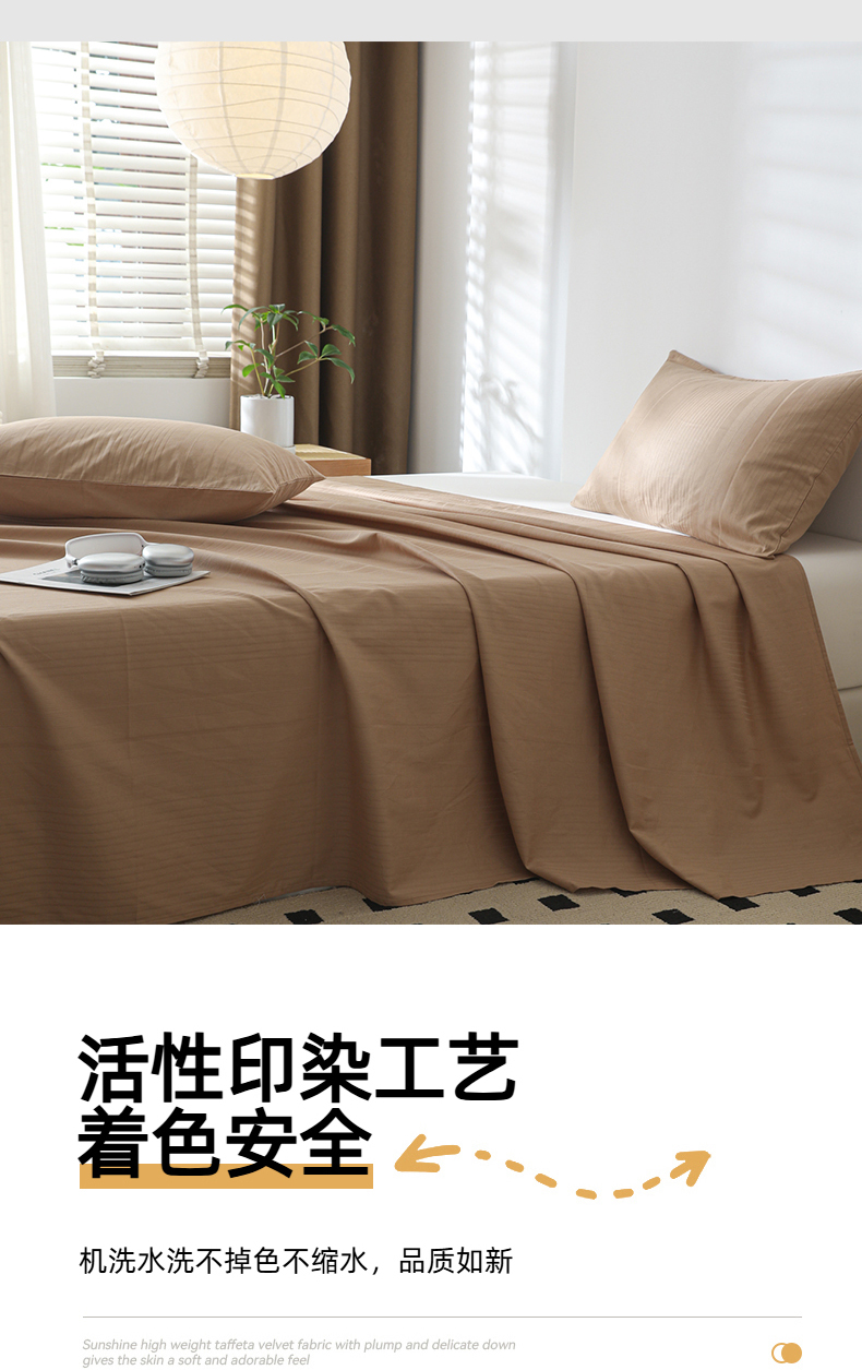 • 91家纺网 家纺一手货源 找家纺 简宜家居(朝初家纺) 2025新款60支贡缎提花A版纯棉床单 条纹-咖