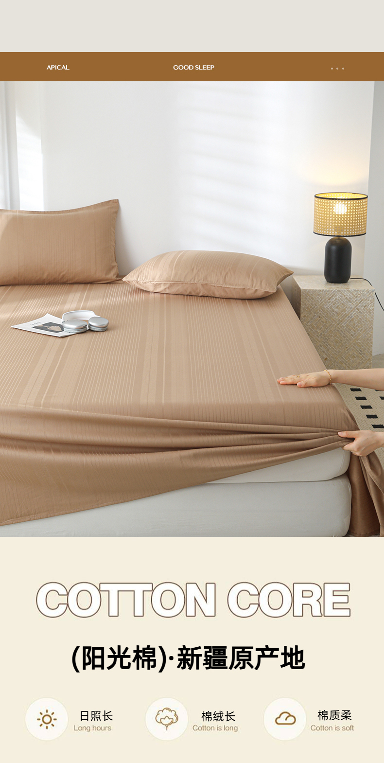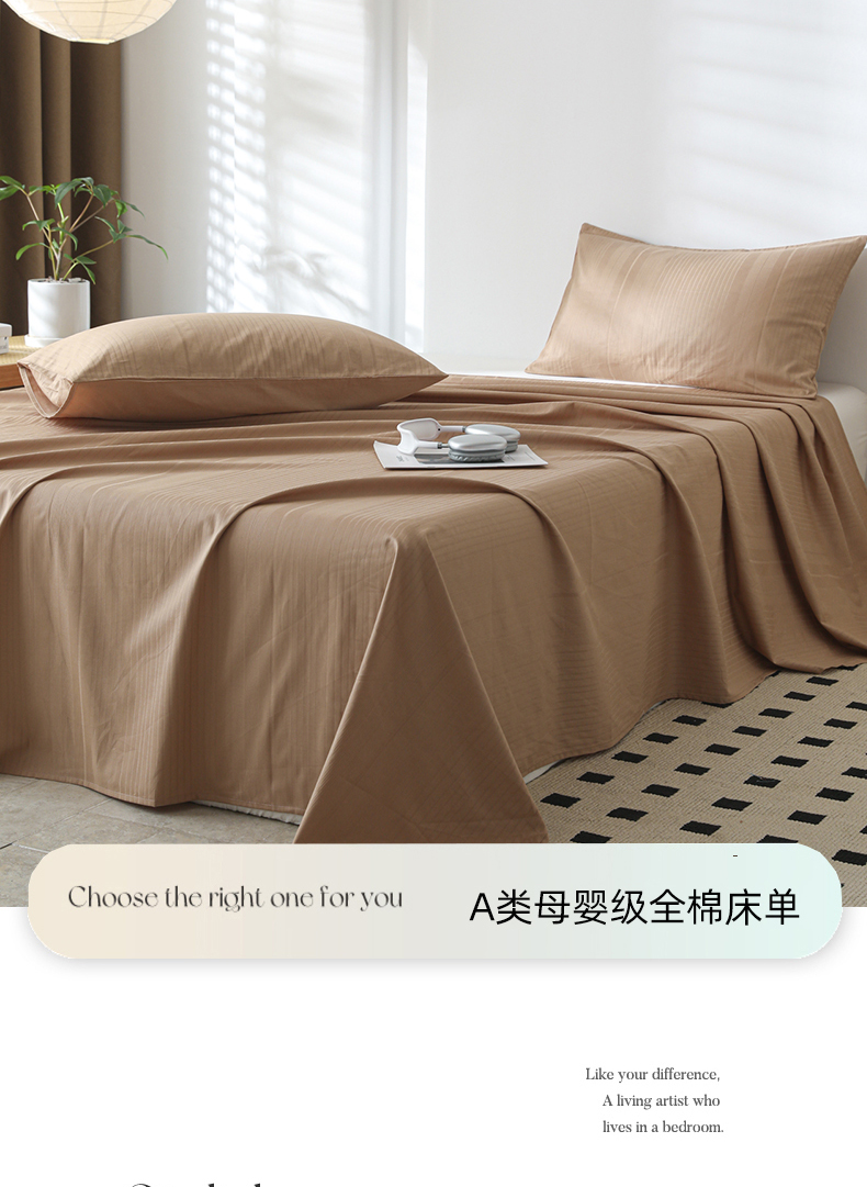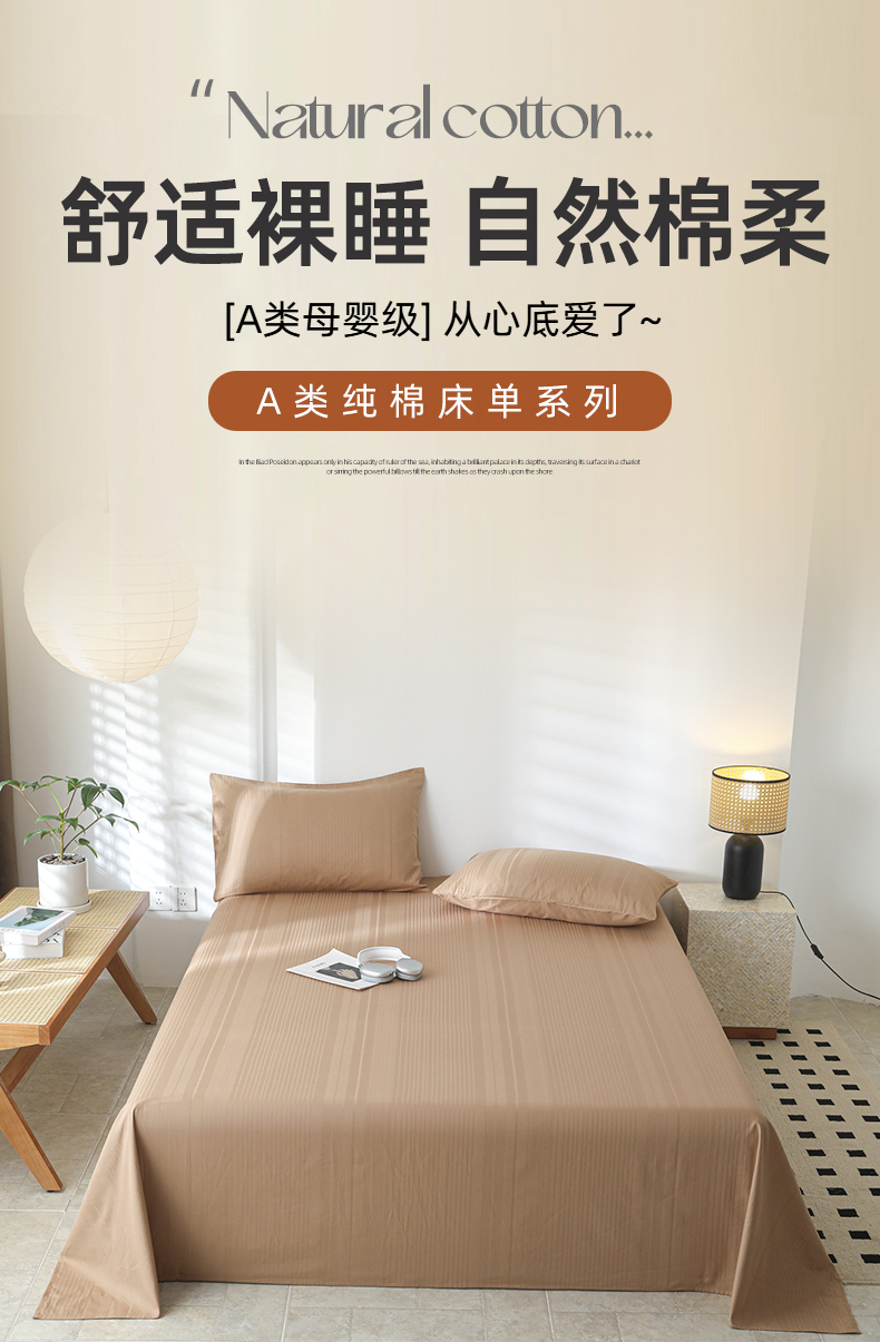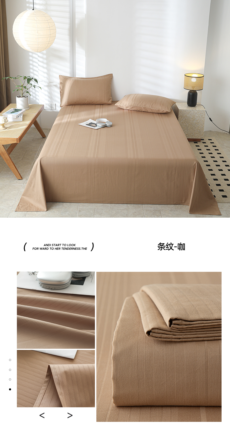 简宜家居(朝初家纺) 2025新款60支贡缎提花A版纯棉床单 条纹-咖