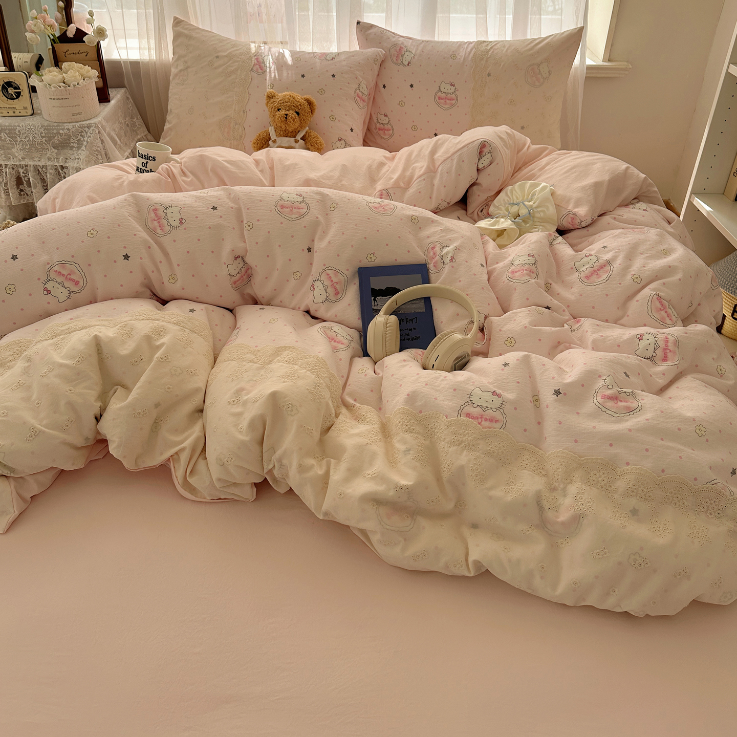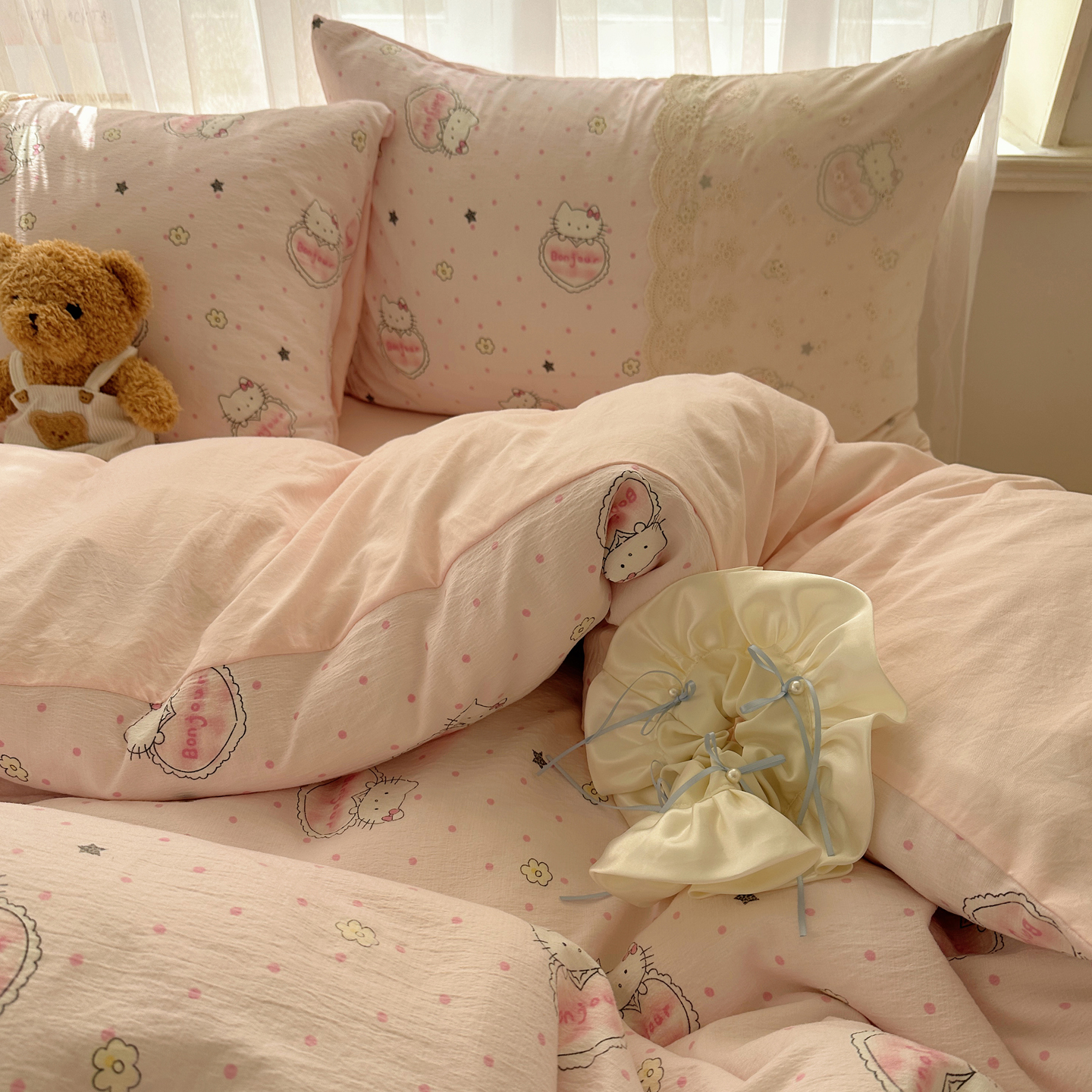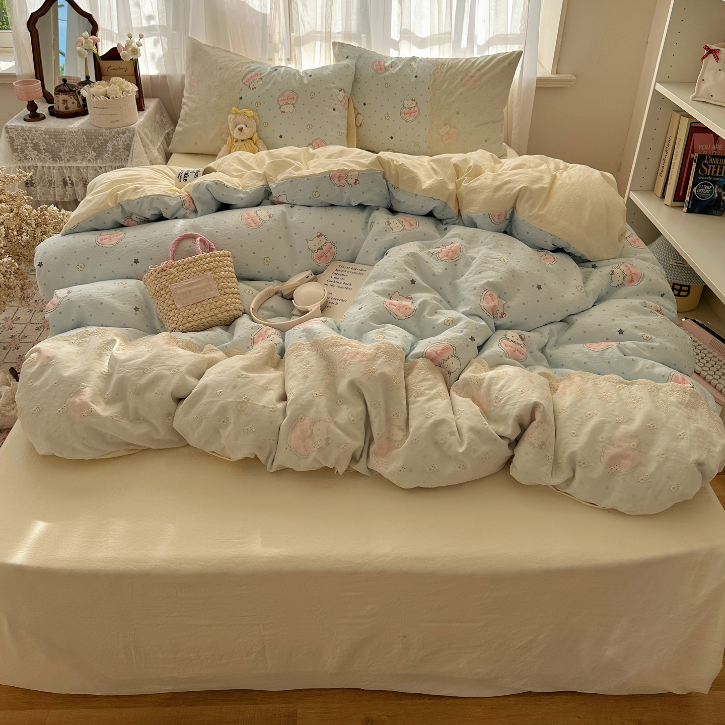 当前位置: 91家纺网 > 商品网购 > 床品套件 > 四件套 > 其它四件套 > 顾里家纺 2025新款蕾丝花边卡哇伊云感皱皱纱四件套套件 花间集