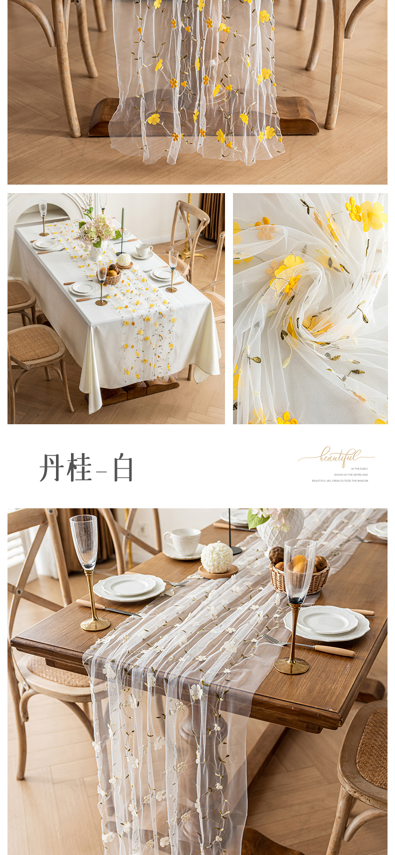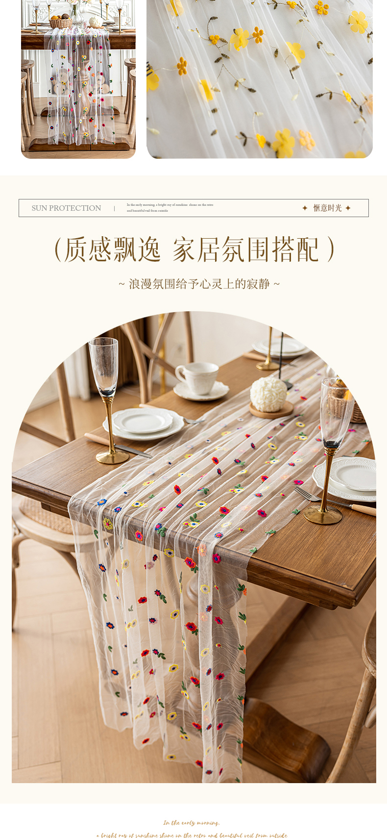 当前位置: 91家纺网 > 商品网购 > 床品定制 > 桌布/桌旗定制定做 > 南通大梧纺织 2025新款网纱绣花法式复古风小野花桌旗 小野花-米纱 70x270cm
