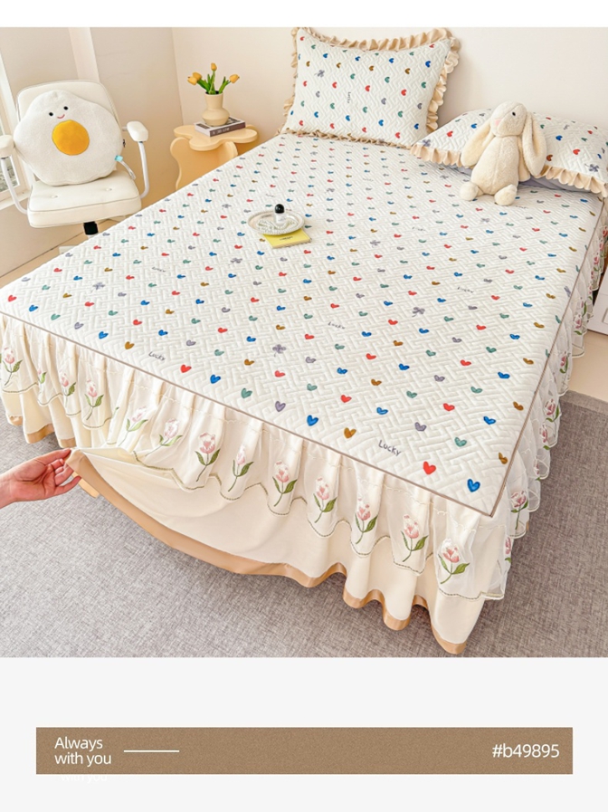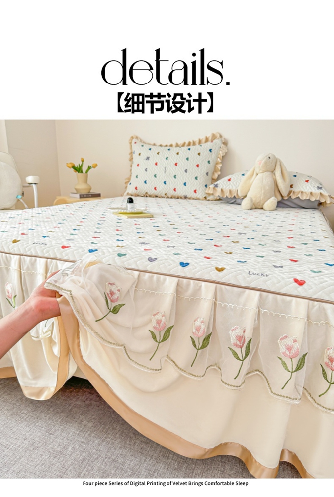 商品名称:手艺人家纺 2025新款牛奶绒绗缝R01-R05单床裙 床裙单件 床裙R02