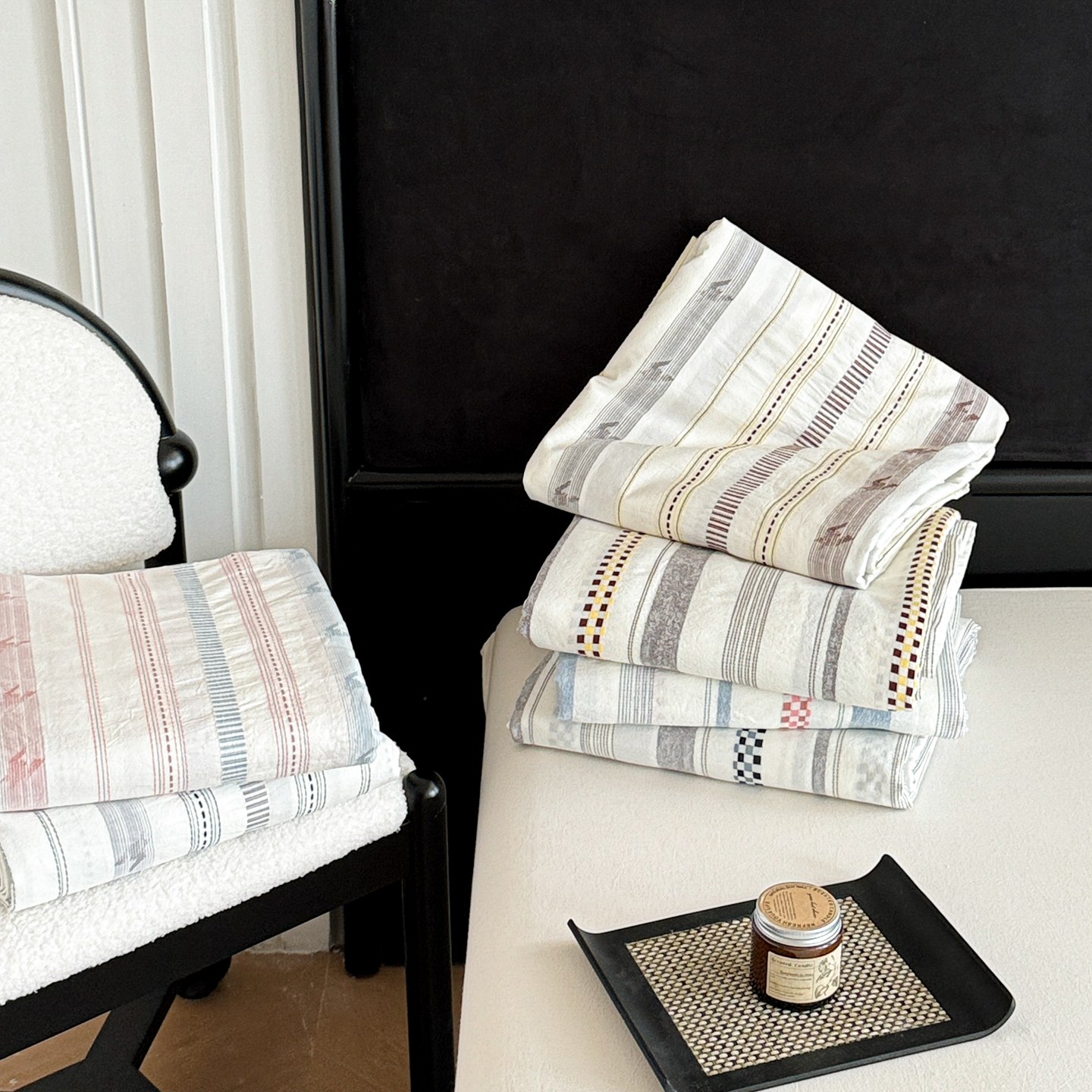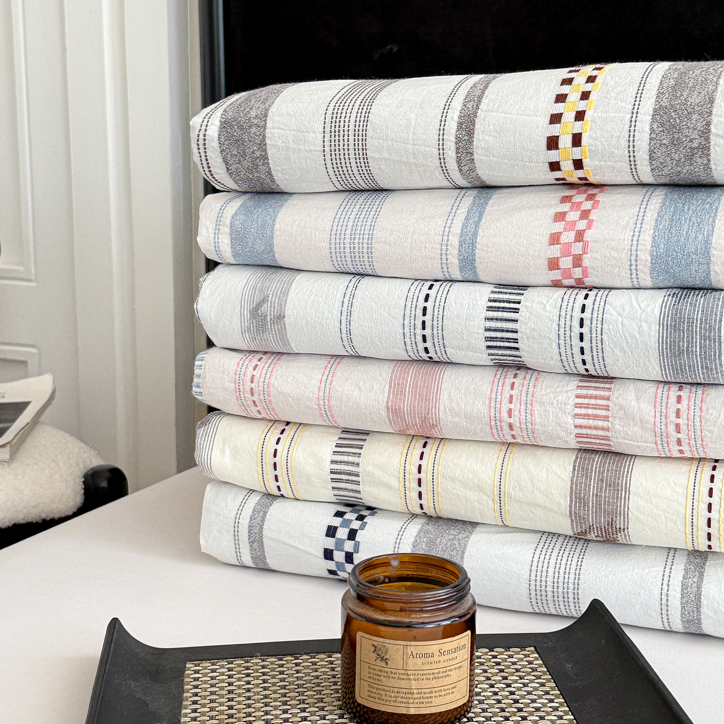 (总)眠博士 2026新款全棉纯棉水洗色织提花股线四件套,套件-未来 蓝,套件-未来 粉,套件-未来 灰,套件-素简 粉,套件-素简 蓝,套件-素简 米