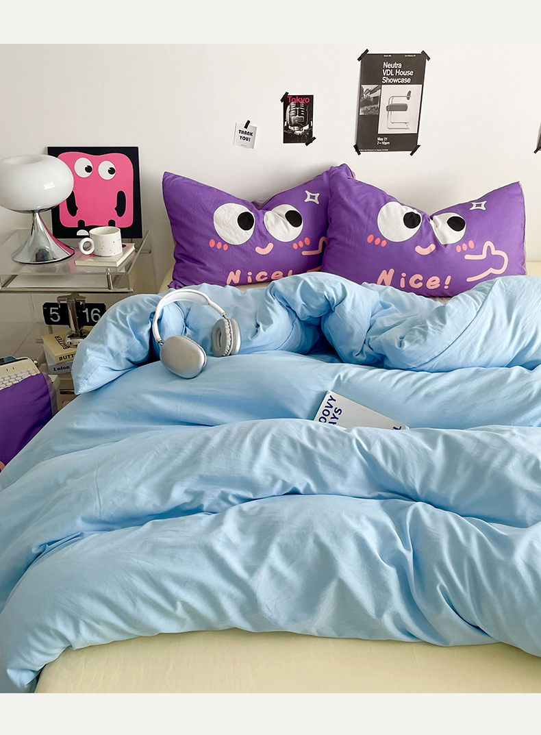 (总)优卡迪家纺馆 2025新款A类亲肤水洗棉大眼萌纯色混搭四件套