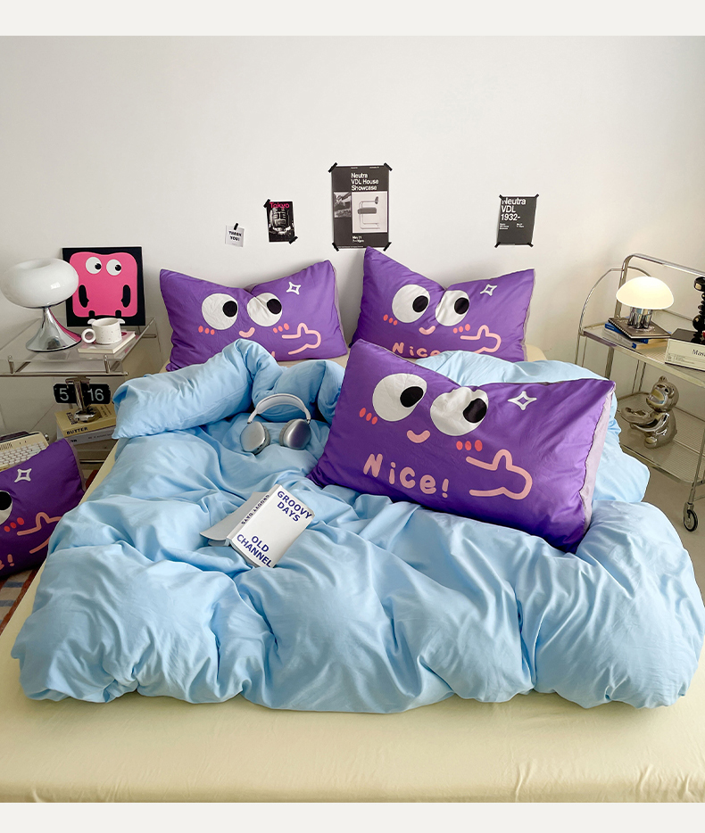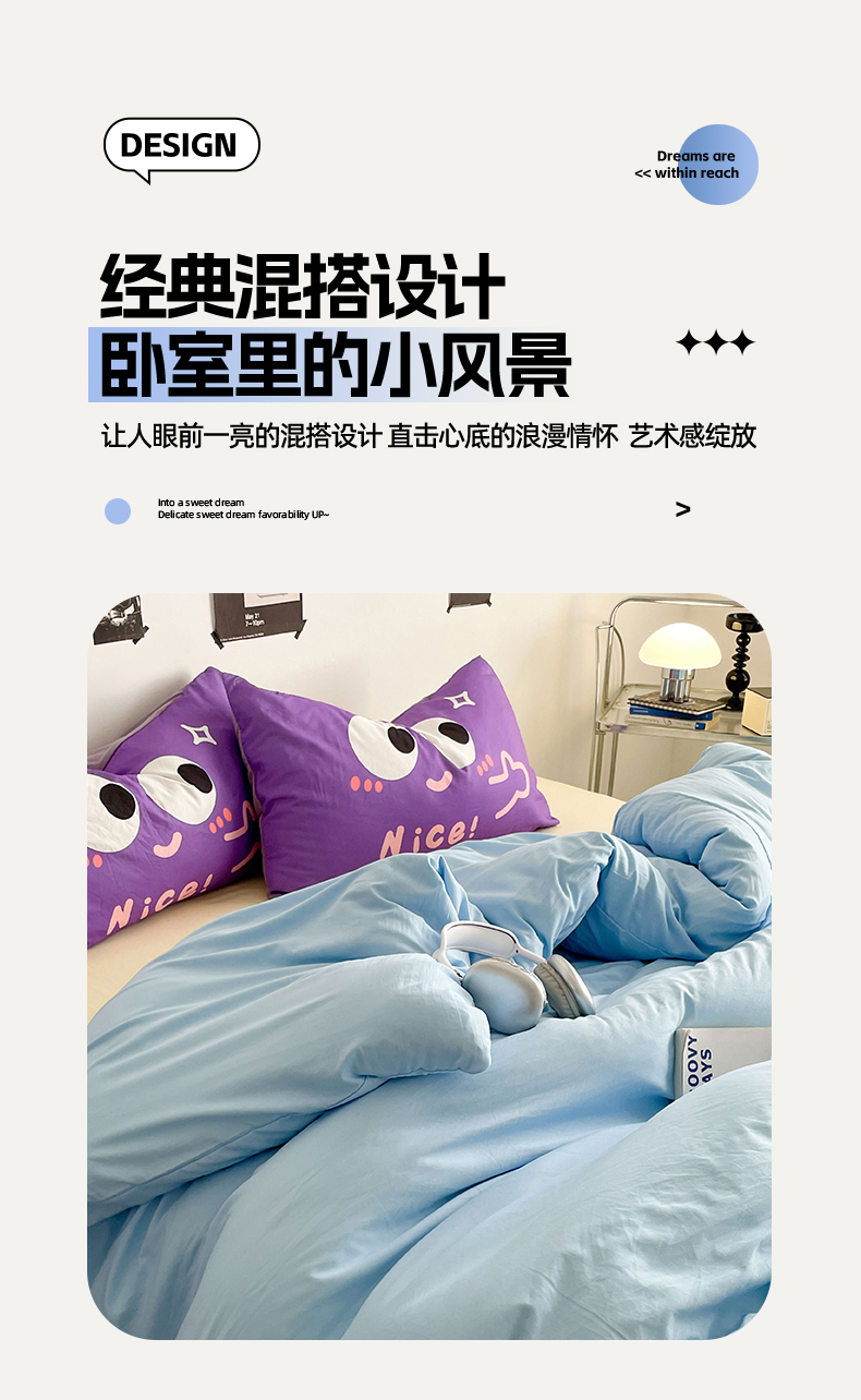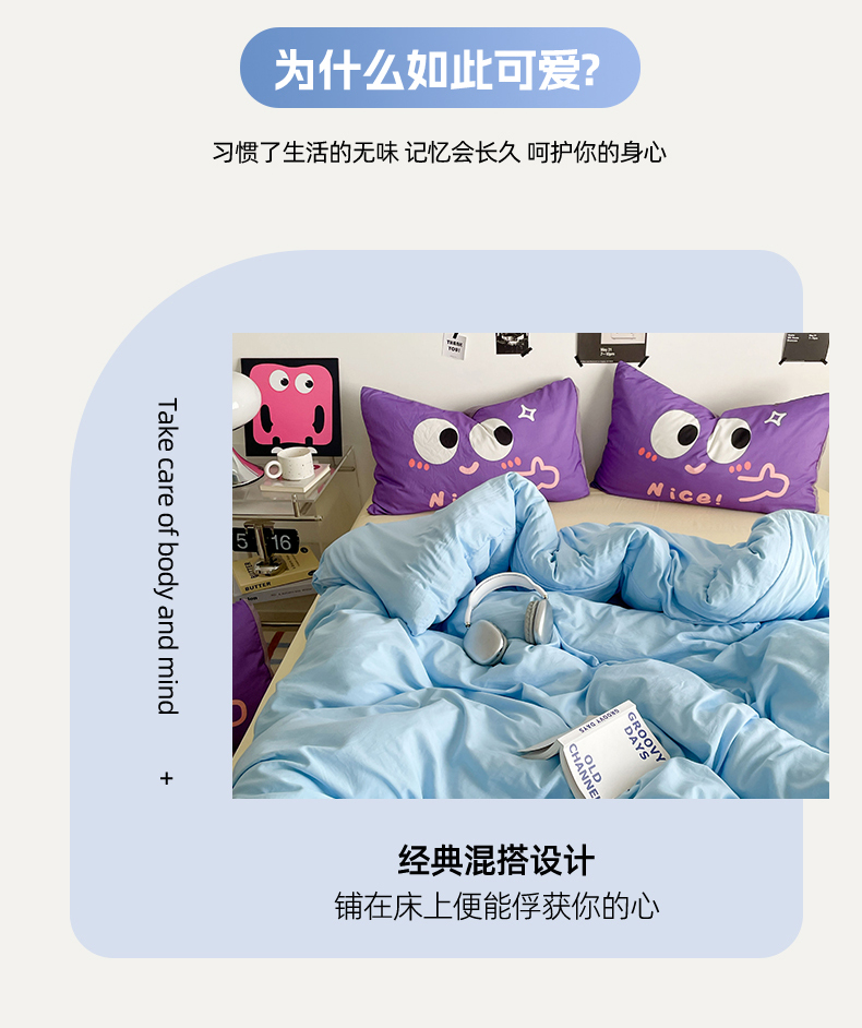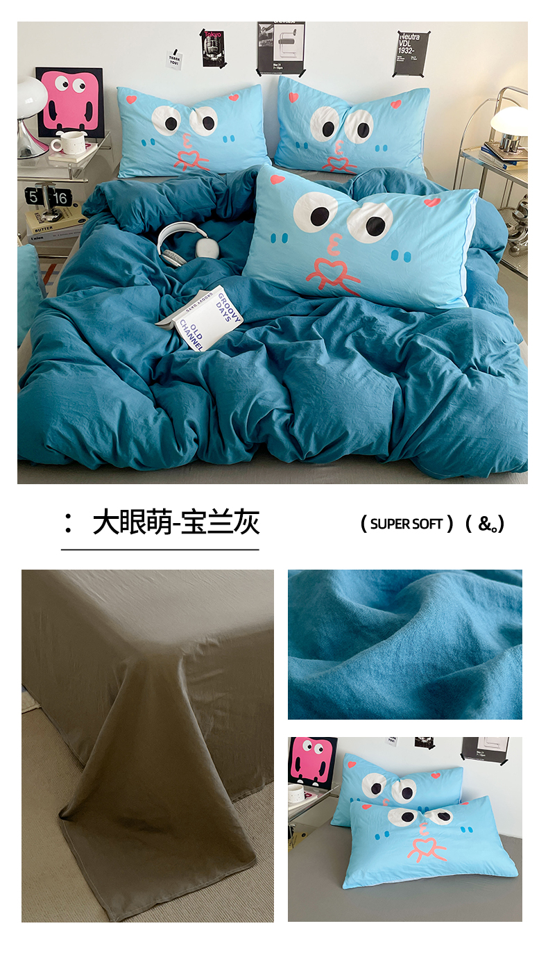 商品名称:(总)优卡迪家纺馆 2025新款A类亲肤水洗棉大眼萌纯色混搭四件套
