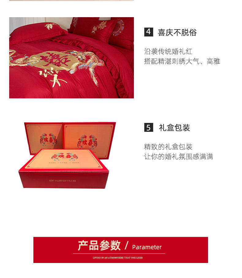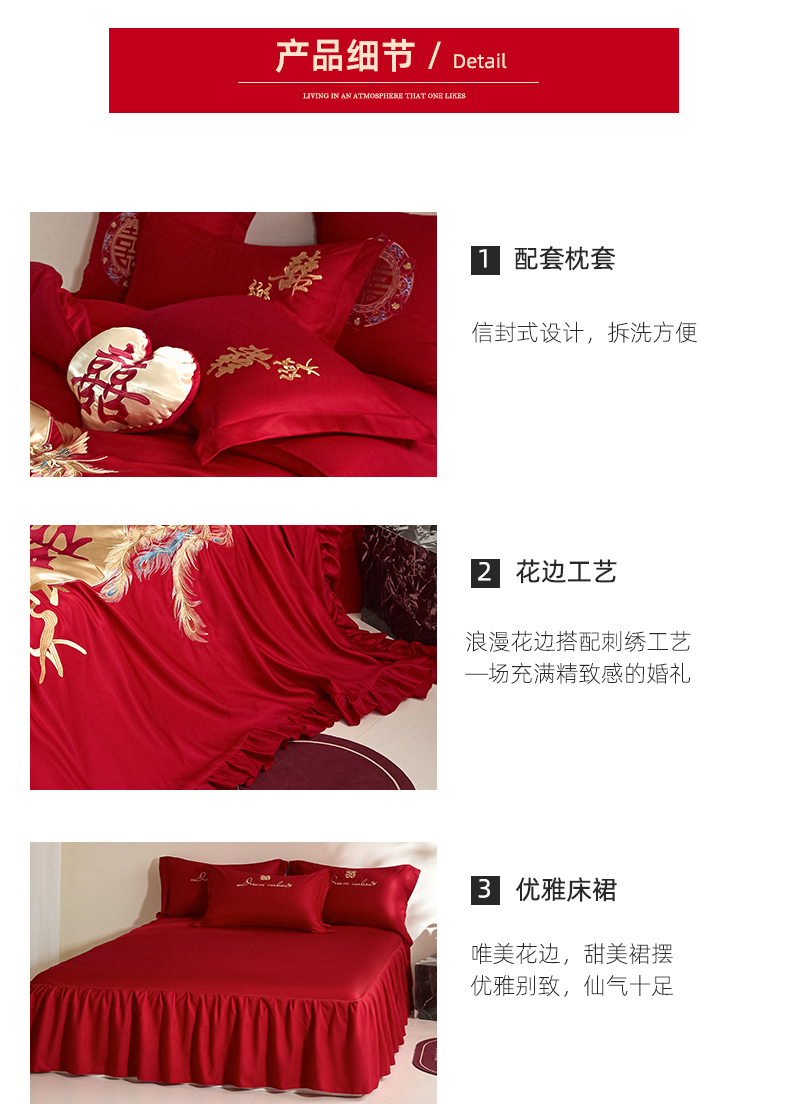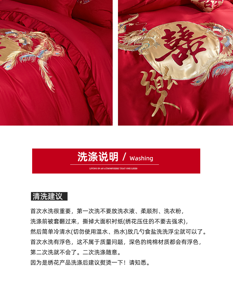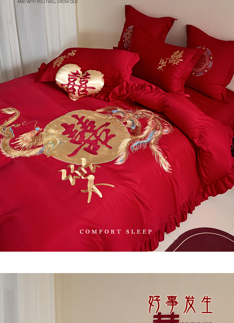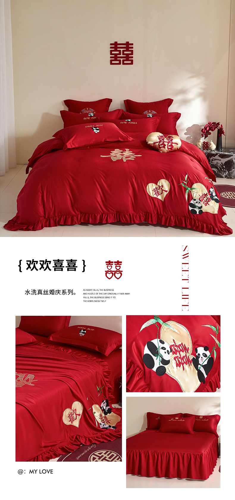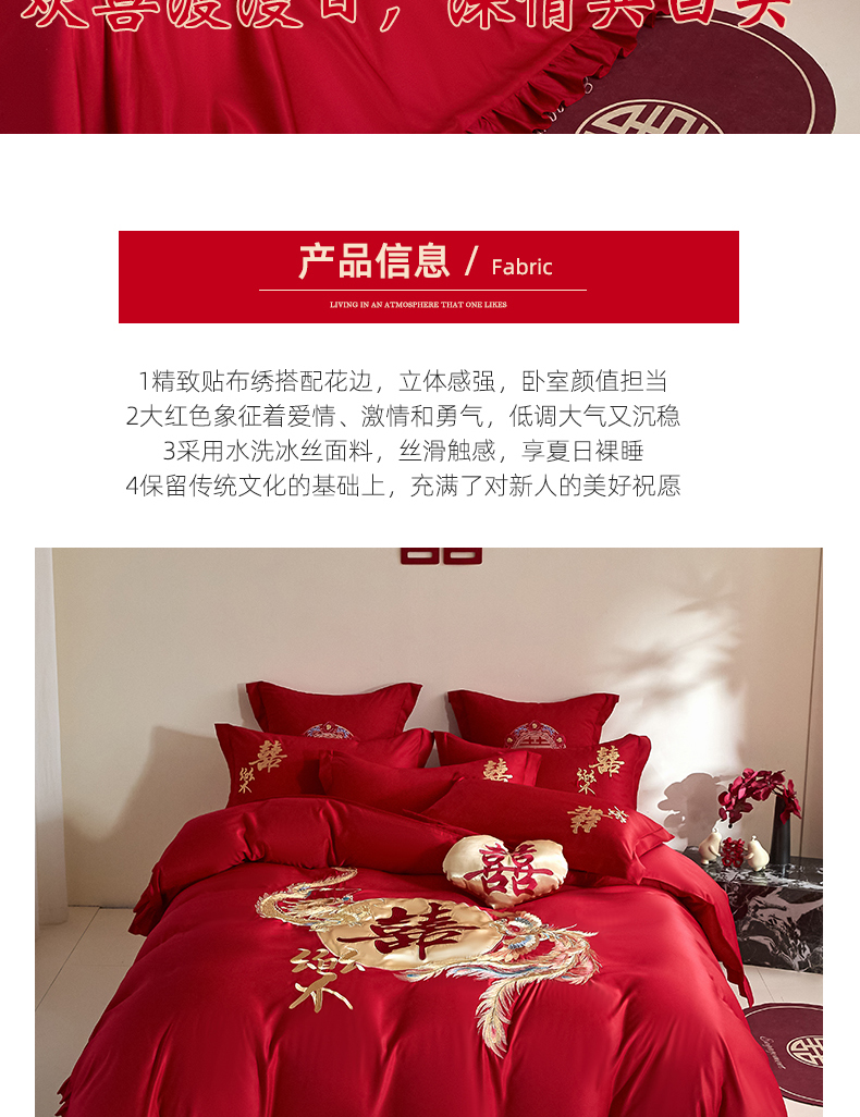 当前位置: 91家纺网 > 商品网购 > 床品套件 > 四件套 > 婚庆四件套 > 玉雅家纺 2025新款水洗冰丝刺绣床裙款婚庆四件套 床裙款-龙凤缘