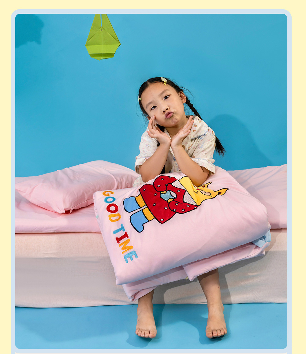(总)喜多兔儿童家纺 2025新款小梦幻纯棉针织棉紧密纺绣花幼儿园被子三件套