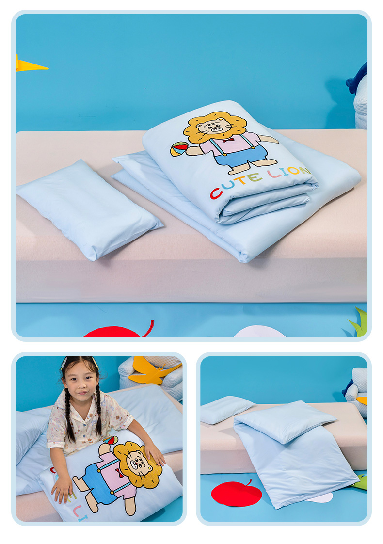 (总)喜多兔儿童家纺 2025新款小美好13372纯棉绣花幼儿园被子三件套多件套,组合图仅供展示,粉色美好小猫咪,粉色美好小兔子,黄色美好卡皮巴拉,黄色美好小狮子,蓝色美好独角兽,蓝色美好小熊,绿色美好小恐龙,绿色美好小青蛙