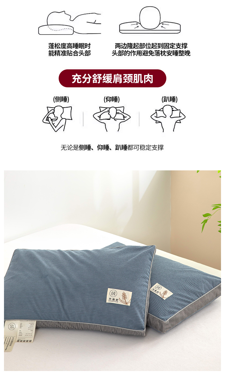 当前位置: 91家纺网 > 商品网购 > 枕头/枕芯/保健枕/颈椎枕 > 普通枕芯 > 枕之坊 2025新款灯芯绒荞麦壳护颈枕枕头枕芯 组图仅供参考 30x50cm/只