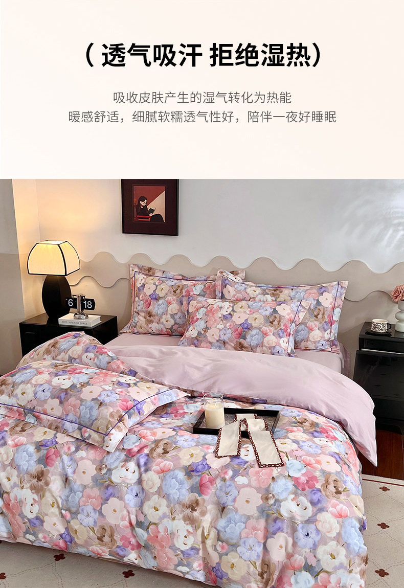 (总)启航家居 2026新款春夏天丝莱赛尔数码印花四件套,花颜外兰,半纸叶灰,池禾韵兰,春溢然兰,春溢然绿,花颜外粉,花园派对沙色,梦境之翼兰,梦境之翼绿,烟花间粉,烟花间绿,樱岛春漫粉,云间素语绿,云间素语紫,早春的树蓝,早春的树紫,栀花语粉,紫陌紫