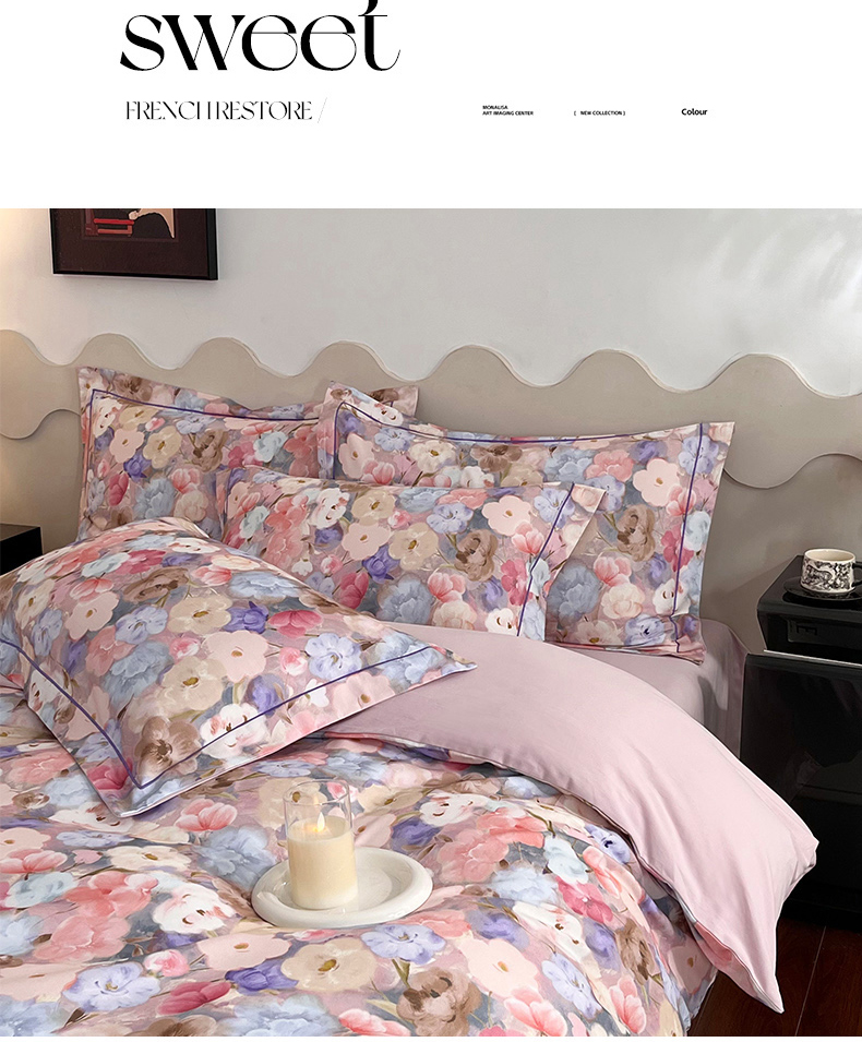 (总)启航家居 2025新款全棉铂金棉数码印花四件套,风香花倦,花的嫁纱,洛香忆梦绿,暮云春树灰,翩若惊鸿粉,普罗旺斯紫,新塞纳舞曲红,新塞纳舞曲紫