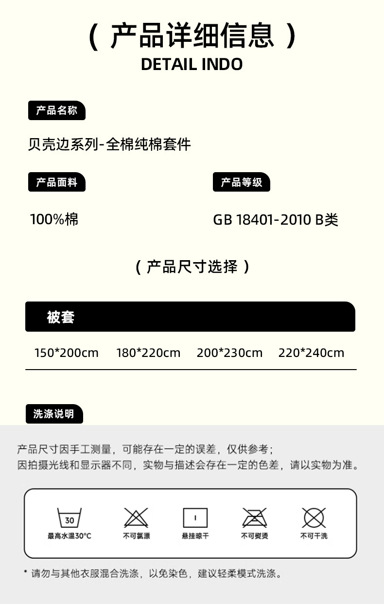 商品名称:浮光家居 2025新款全棉贝壳边系列单被套 青花流韵